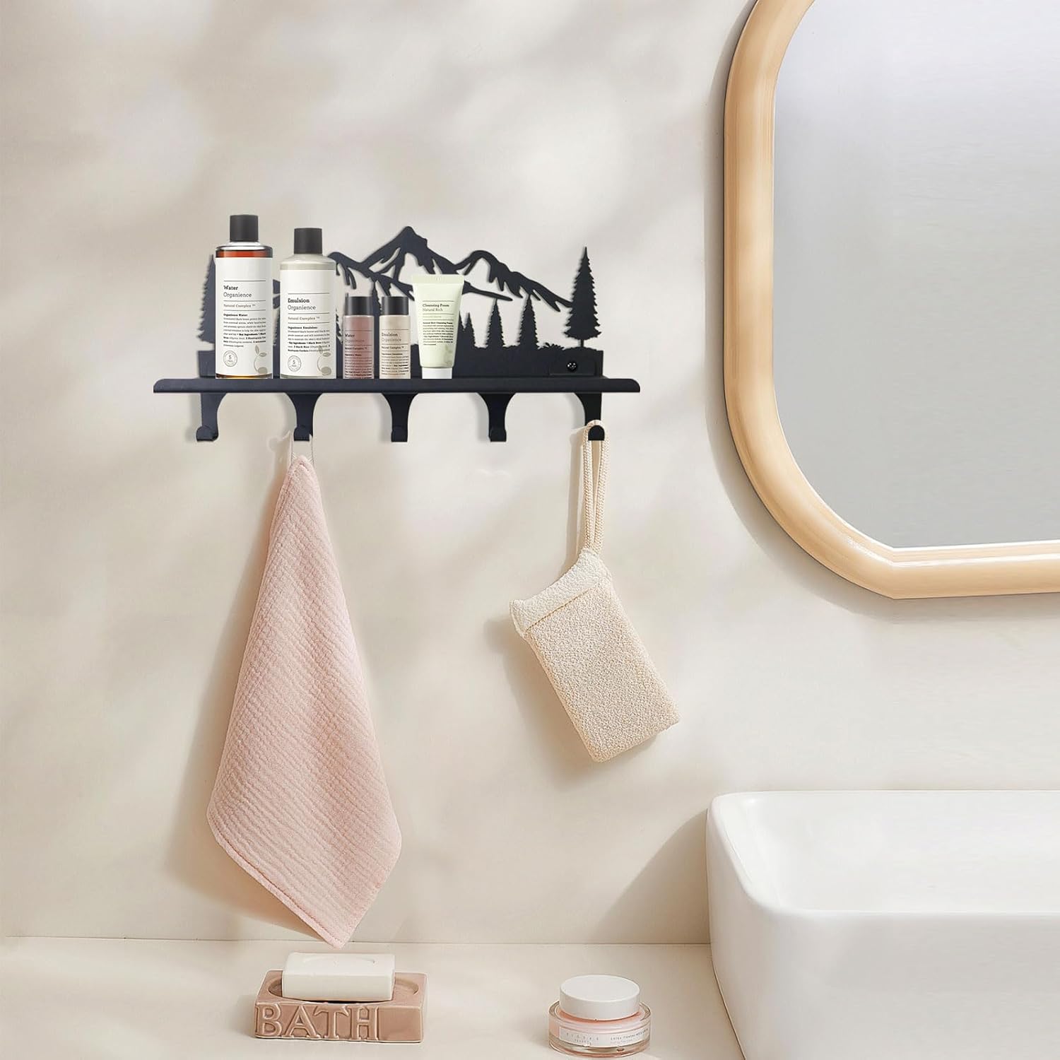 Versatile Design: This decorative wall-mounted piece features a dual-purpose design with a hook and shelf section that can be installed together or separately.