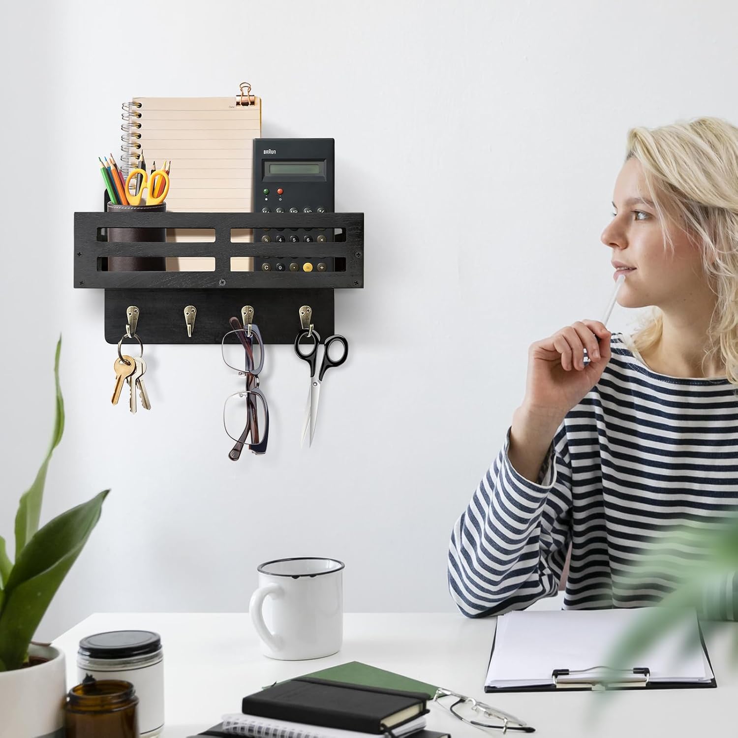 Versatile Wall Organizer: This Key and Mail Holder for wall is perfect for any room—bedroom, bathroom, kitchen, or laundry room. The mail sorter holds letters, bills, and decor, while the hooks are ideal for leashes, cables, backpacks, towels, and more.