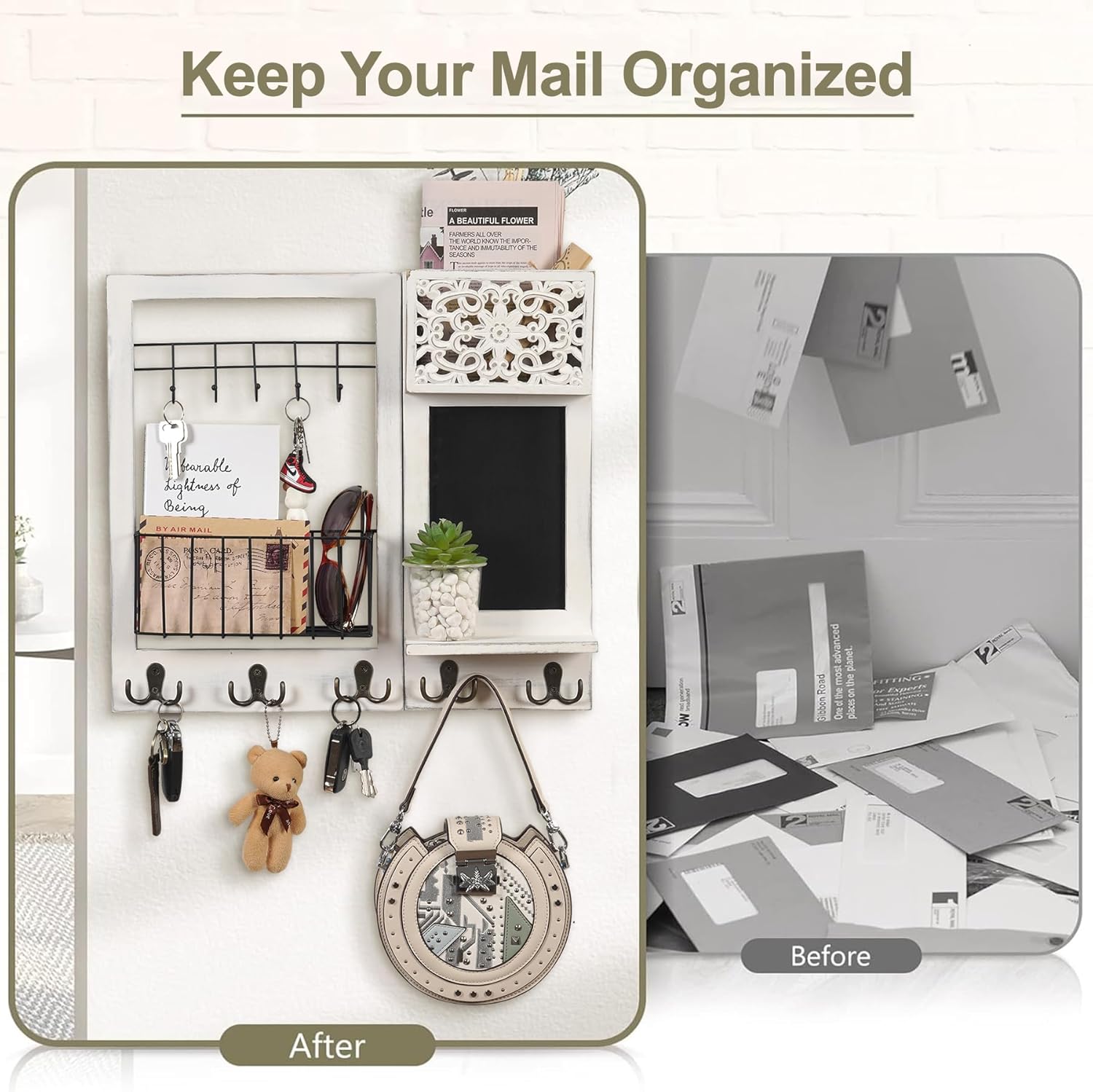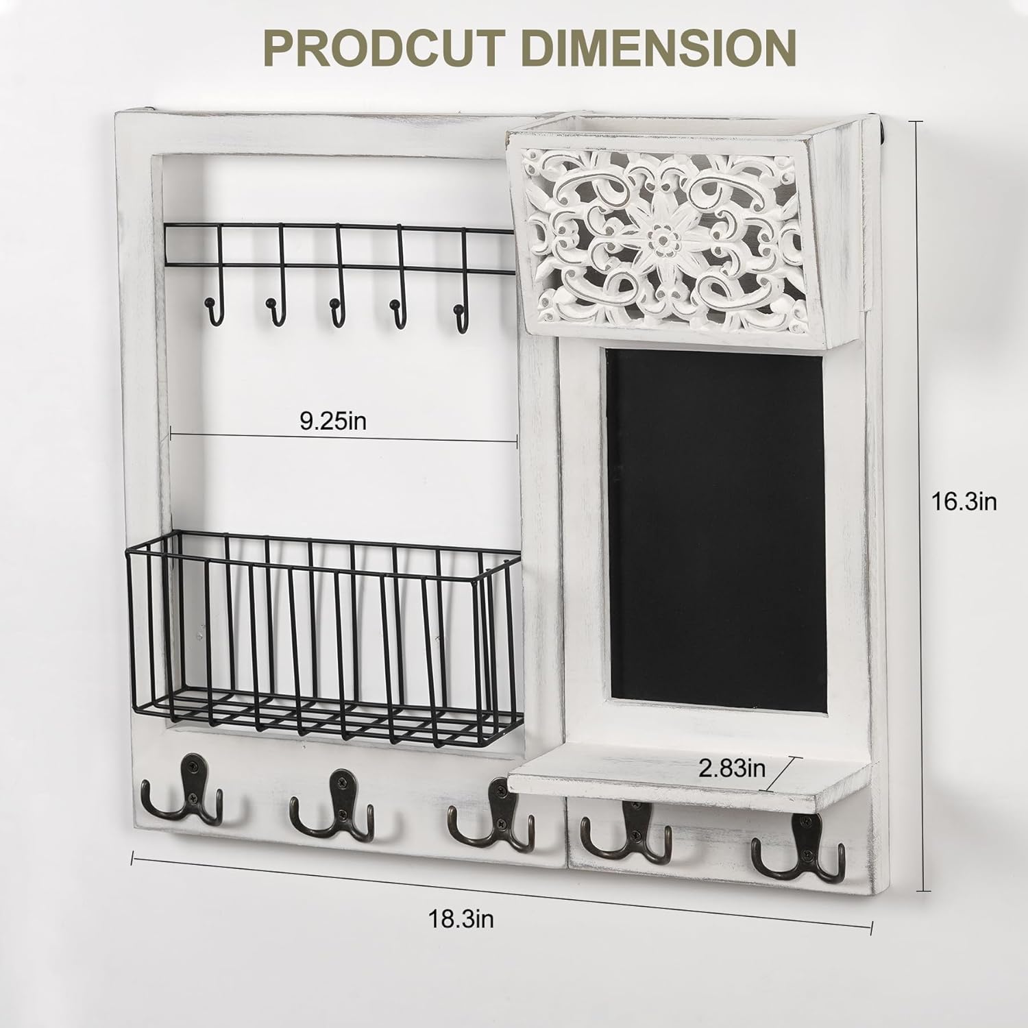 Key Holder Wall Mount, Mail Organizer with 10 Hooks and Shelf, Wall Decorative Key Rack with Chalkboard for Entryway Hallway Bedroom Farmhouse Dog Leash Home Decor