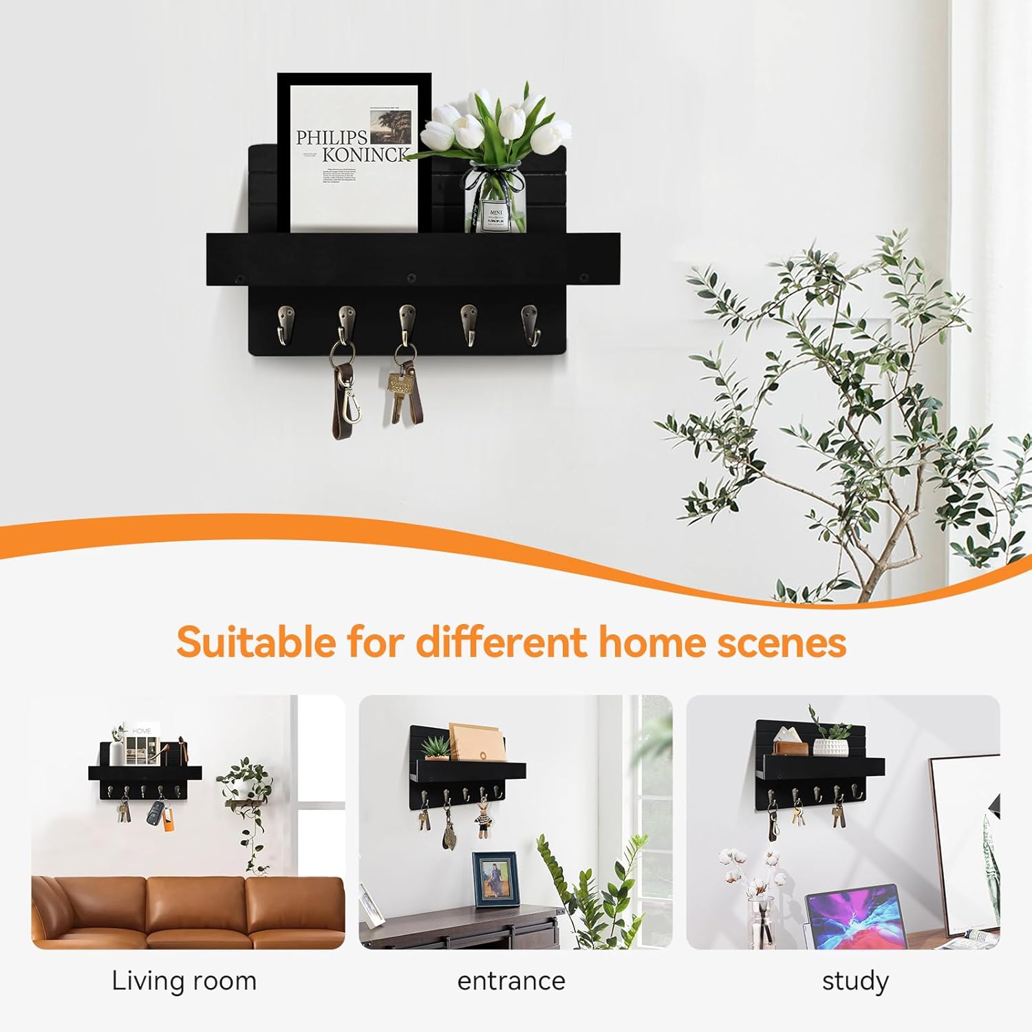 Keep Keys & Essentials Organized: This key rack wall mount with shelf provides a dedicated space for keys, wallets, dog leashes, and coats, keeping your entryway neat and clutter-free