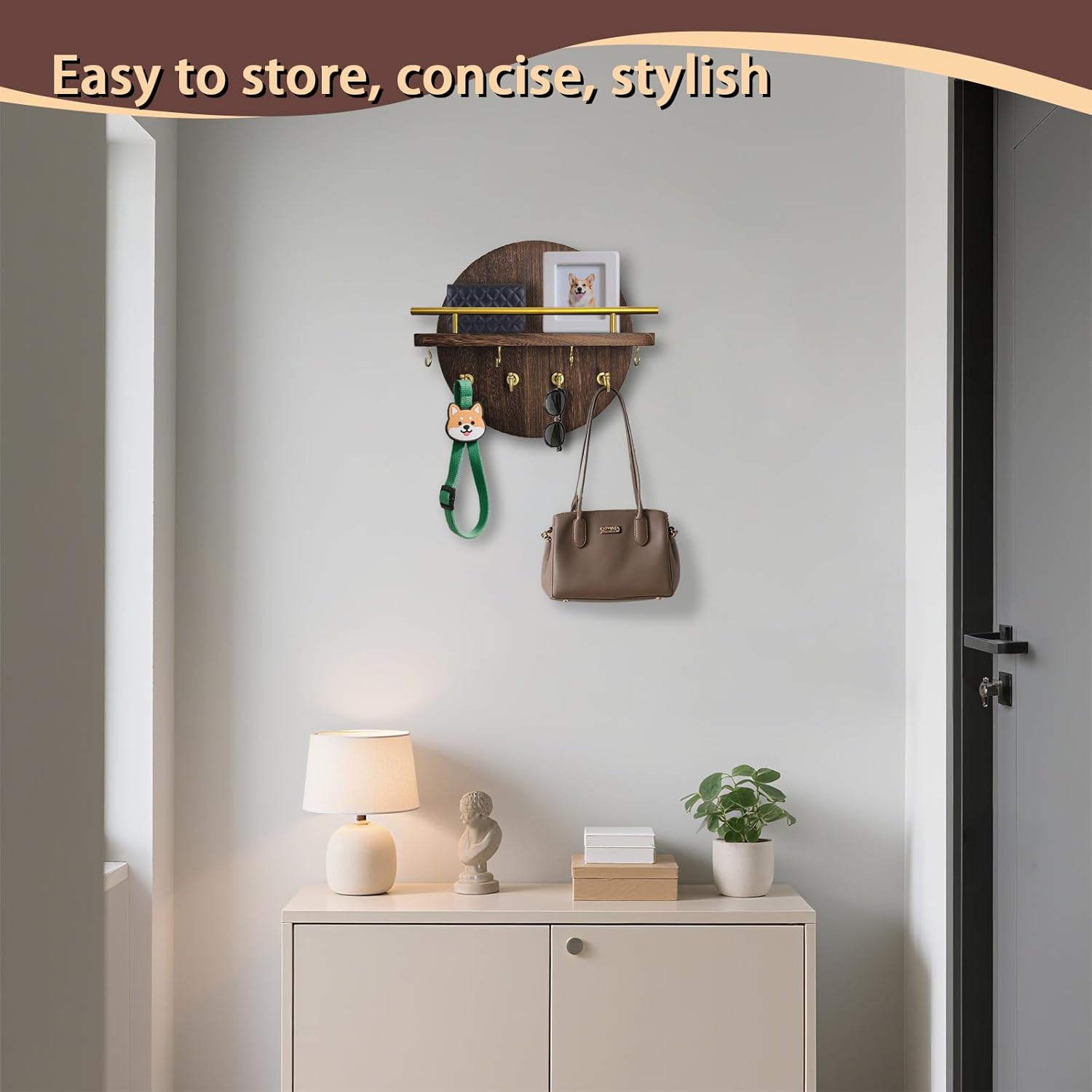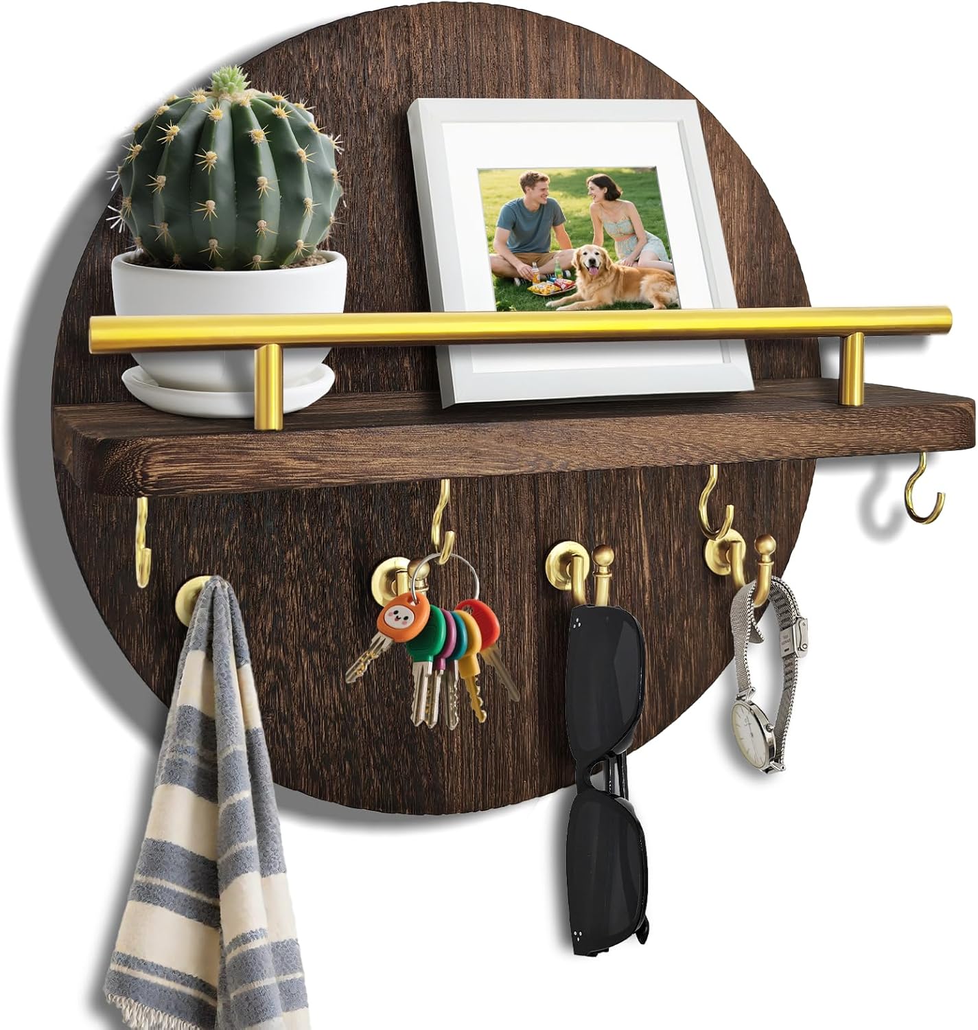 Key Holder Wall Mount with Shelf and Hooks, 11.8 Inch Entryway Gold Key Rack Hanger, Rustic Key Holder for Wall Decor