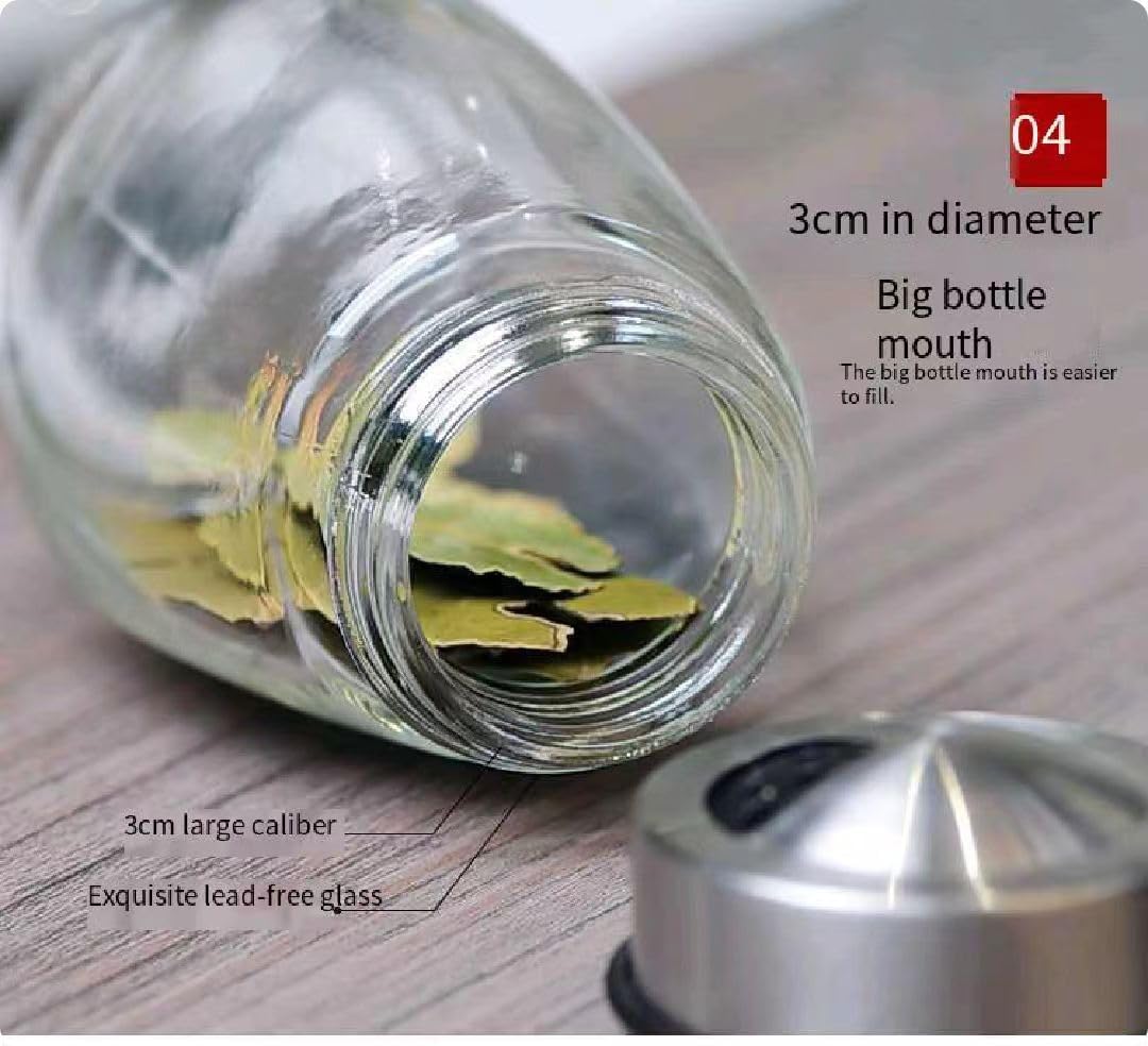 3 Opening Styles: The seasoning jar features three opening types with adjustable lids, allowing you to choose the perfect fit for your spice collection. These containers boast excellent airtightness and moisture-proof properties. The 1.25-inch (3.2cm) neck design lets you fill spices effortlessly without spilling. The transparent glass bottle also helps you quickly and accurately locate the spices you need