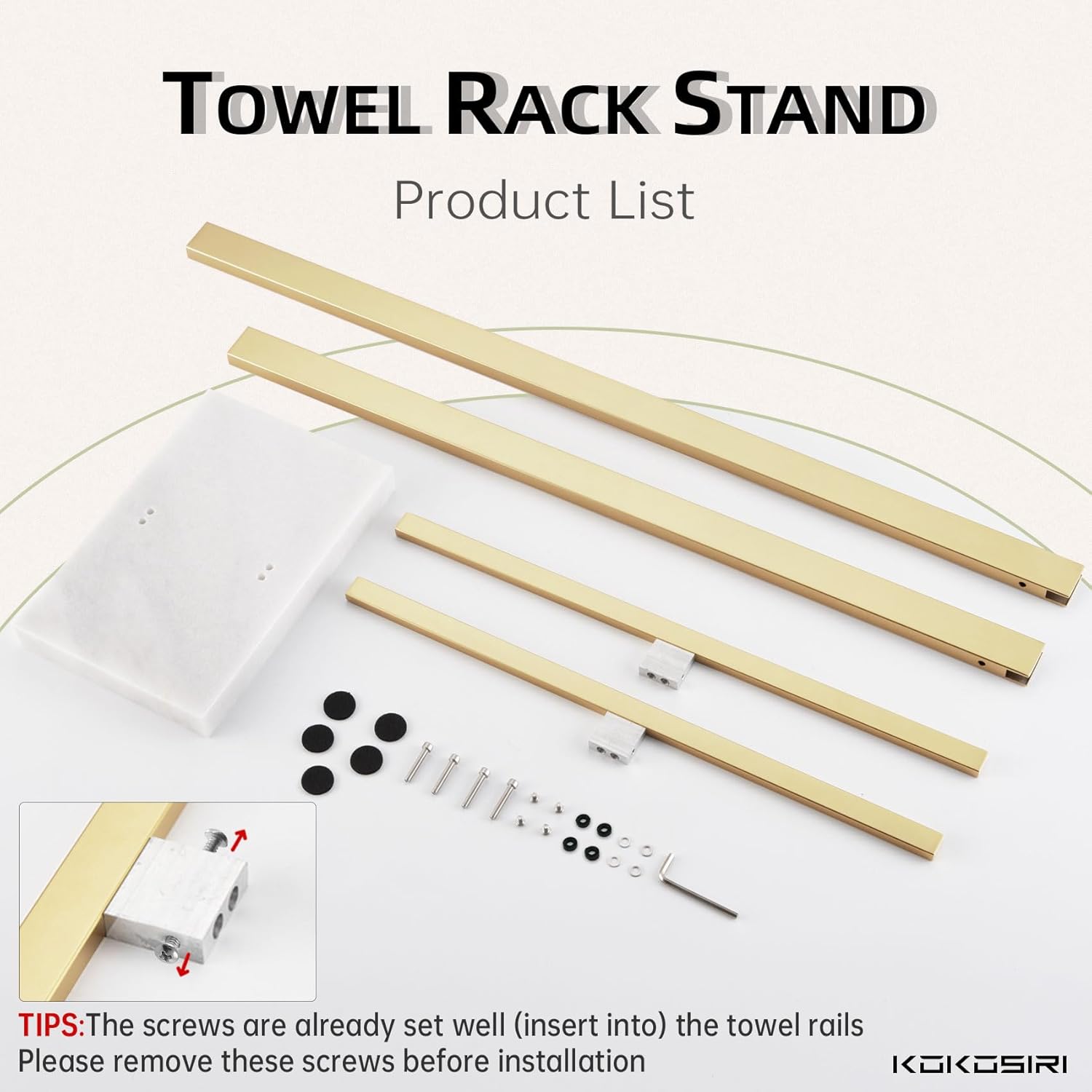 ◄ MATERIAL ► KOKOSIRI bathroom towel rack made of SUS 304 Stainless Steel (premium stainless steel) and upgrade marble. Well made sturdy bath towel rack used of high-grade steel and marble which can resist rust and corrosion. For your health, all the materials we use are the highest quality and harmless. You can rest assured to use all of our products