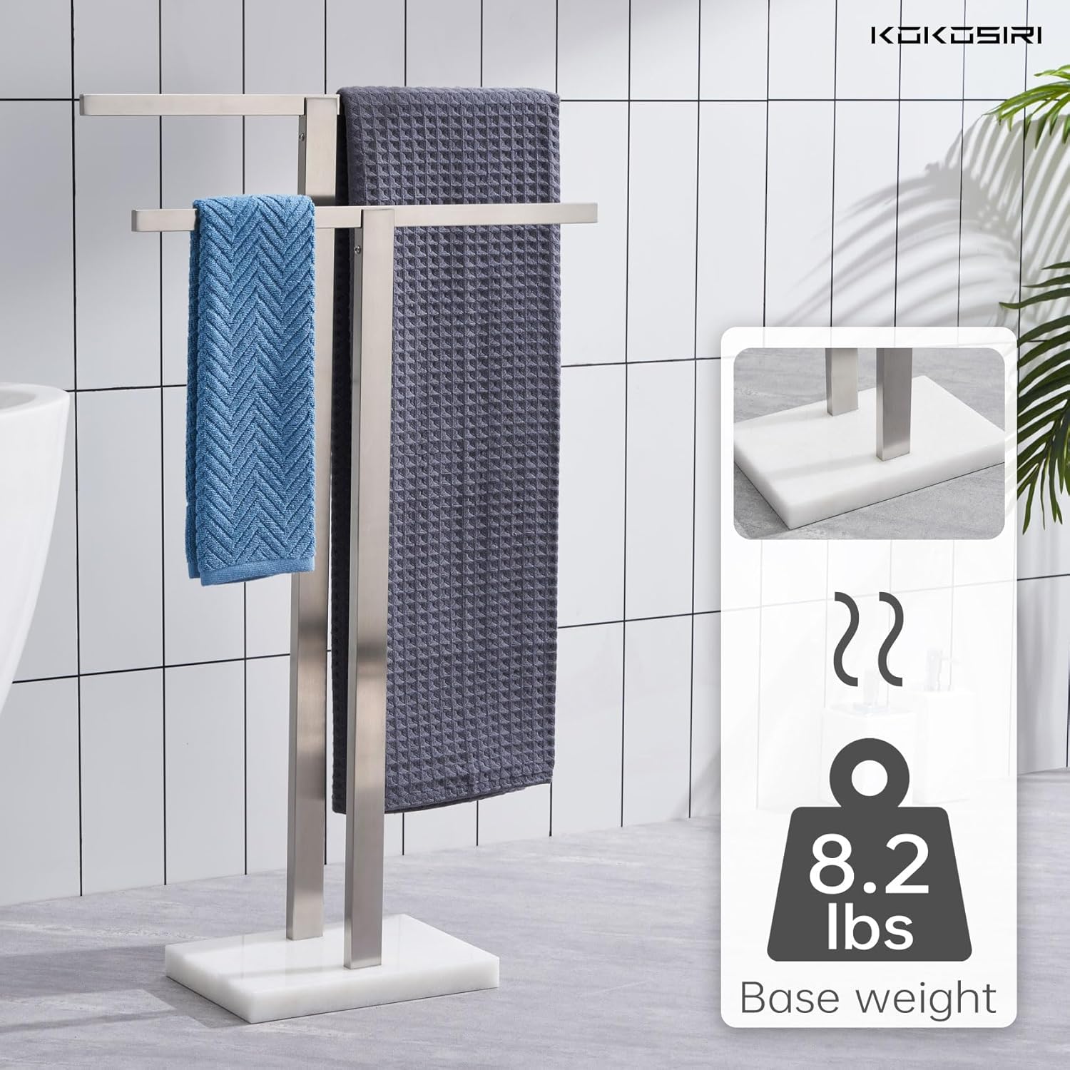 KOKOSIRI Bathroom Towel Racks 2-Tier Standing Towel Bars with Marble Base, Stainless Steel Freestanding Towels Holder, Thicken Steady Design, Brushed Nickel THS0003-BR