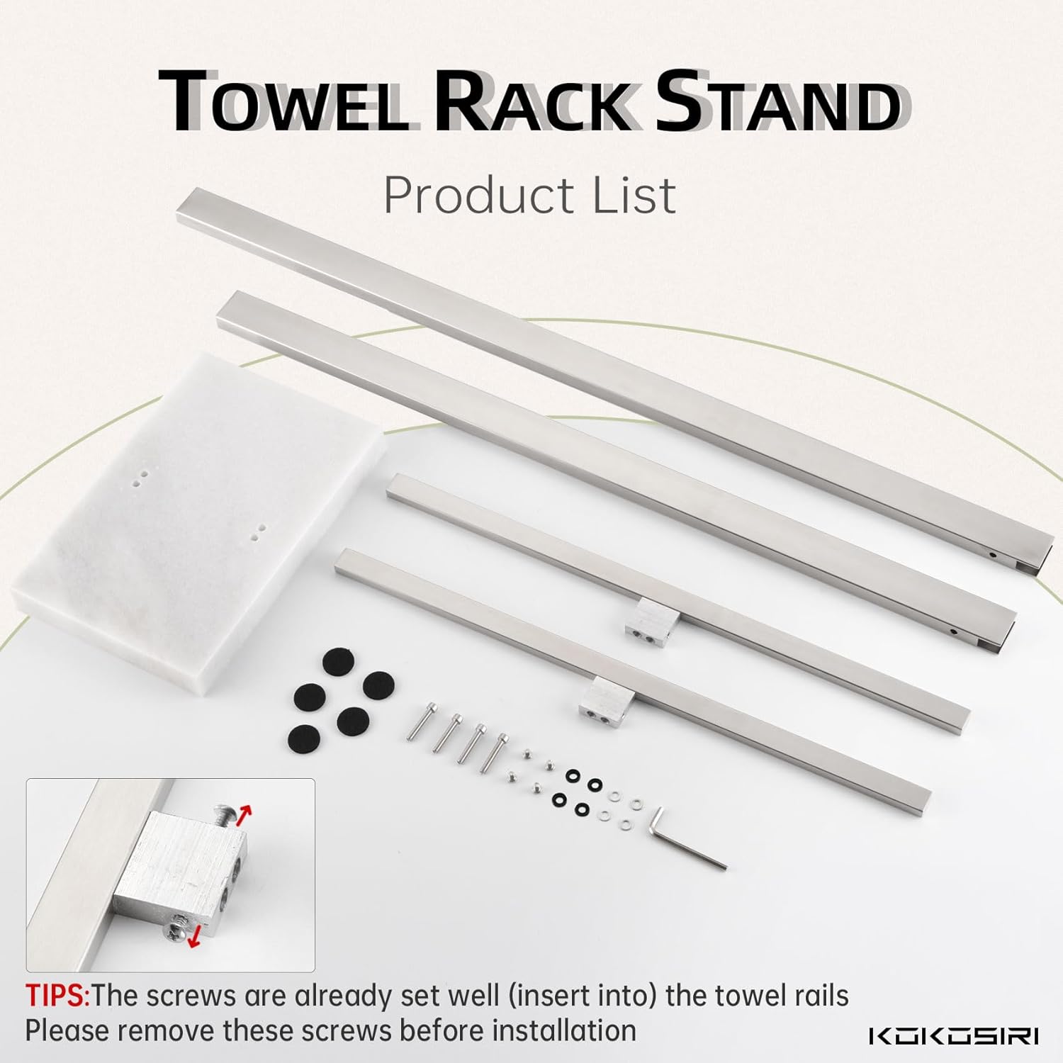 ◄ MATERIAL ► KOKOSIRI bathroom towel rack made of SUS 304 Stainless Steel (premium stainless steel) and upgrade marble. Well made sturdy bath towel rack used of high-grade steel and marble which can resist rust and corrosion. For your health, all the materials we use are the highest quality and harmless. You can rest assured to use all of our products