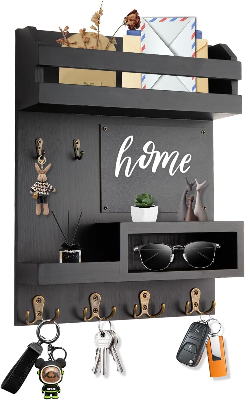 Sturdy Solid Wood: The material of this wall key and mail organizer is made of solid wood, which is sturdy and textured, durable and not easily damaged
