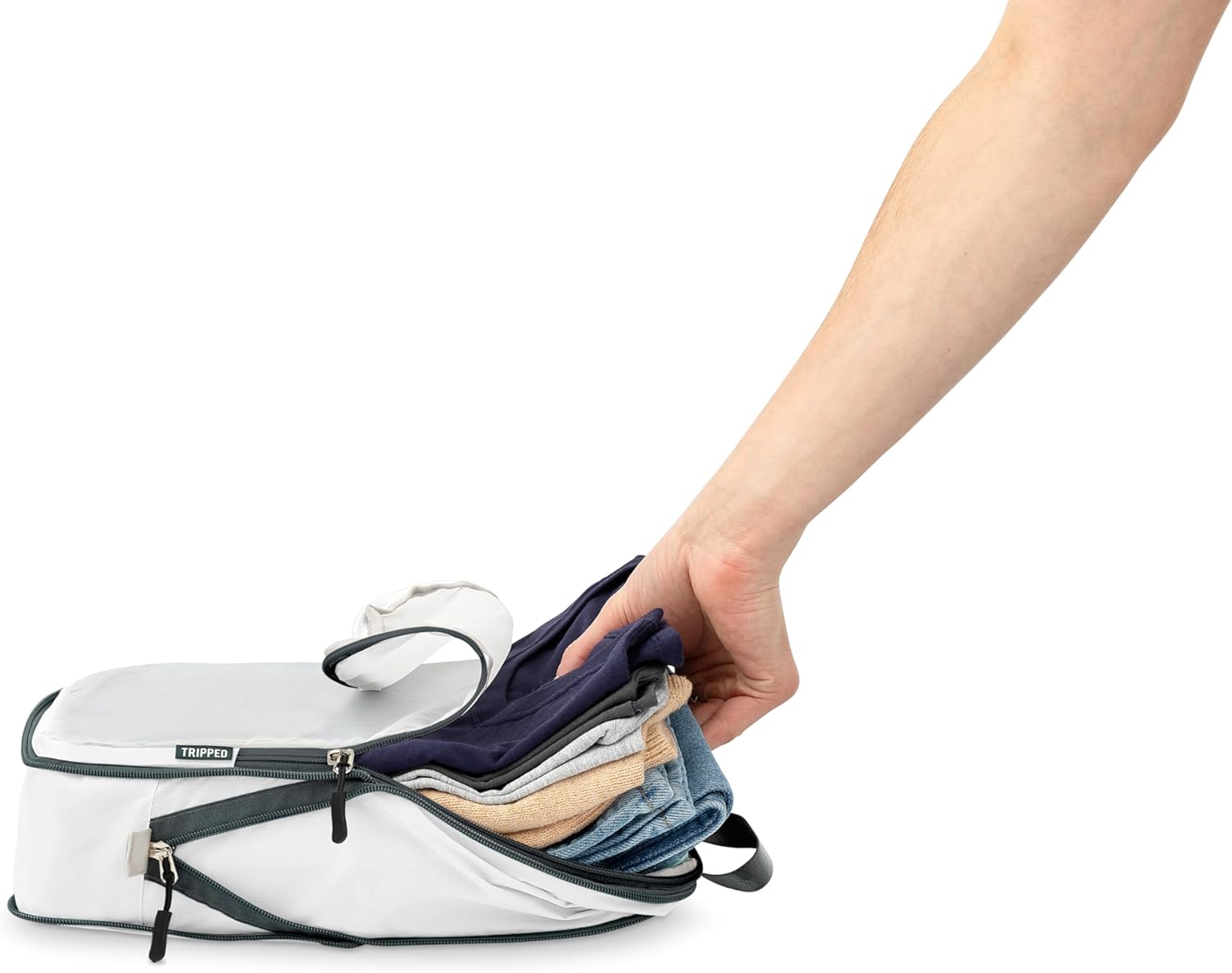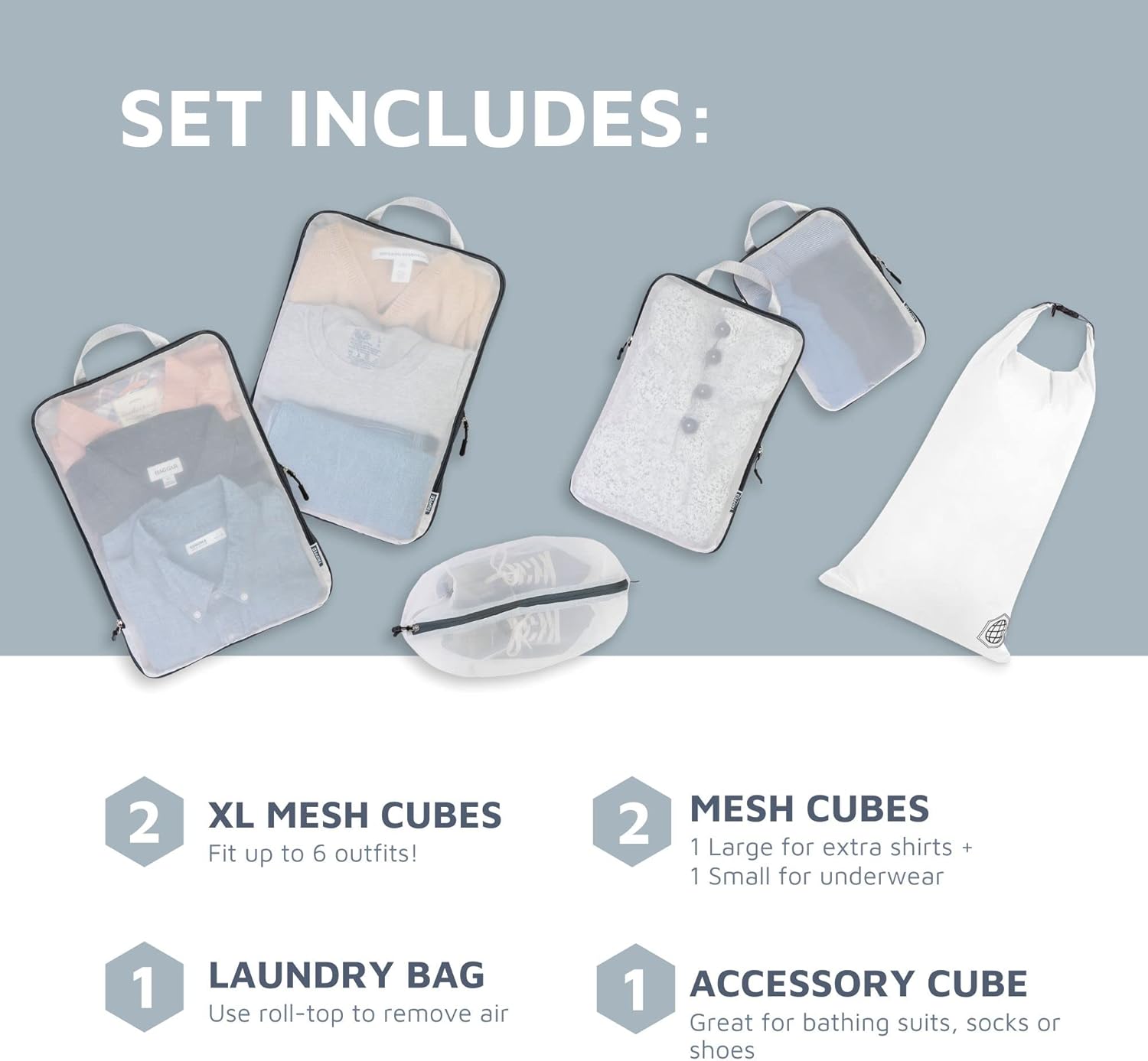 Large Packing Cube Set with See Through Mesh- Compression Packing Cubes Travel Organizers by TRIPPED Travel Gear (White)