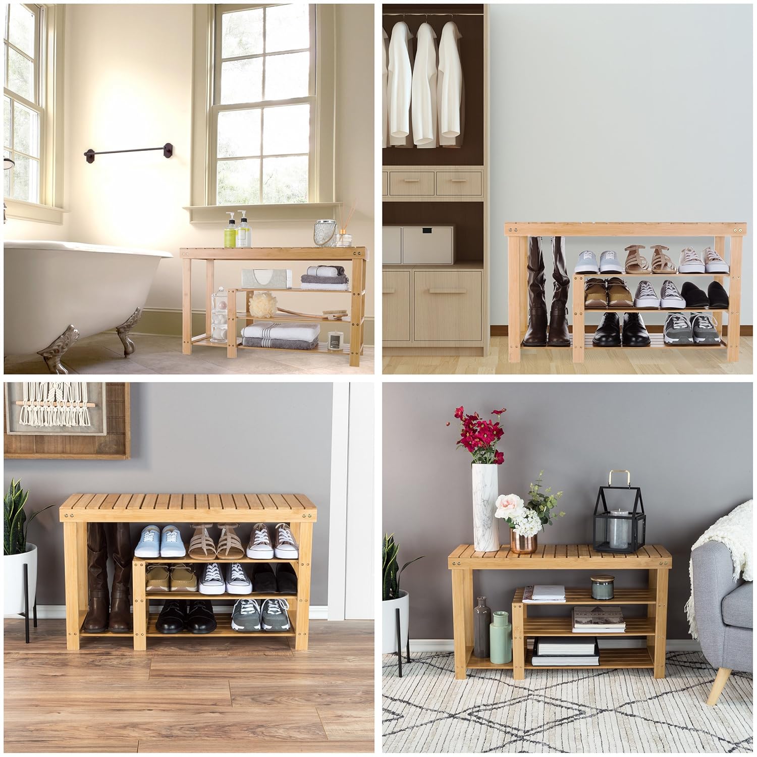 BAMBOO CONSTRUCTION – Constructed from beautiful bamboo, this wood shoe rack is durable and eco-friendly. The natural wood look of this mudroom bench will nicely complement any home décor.