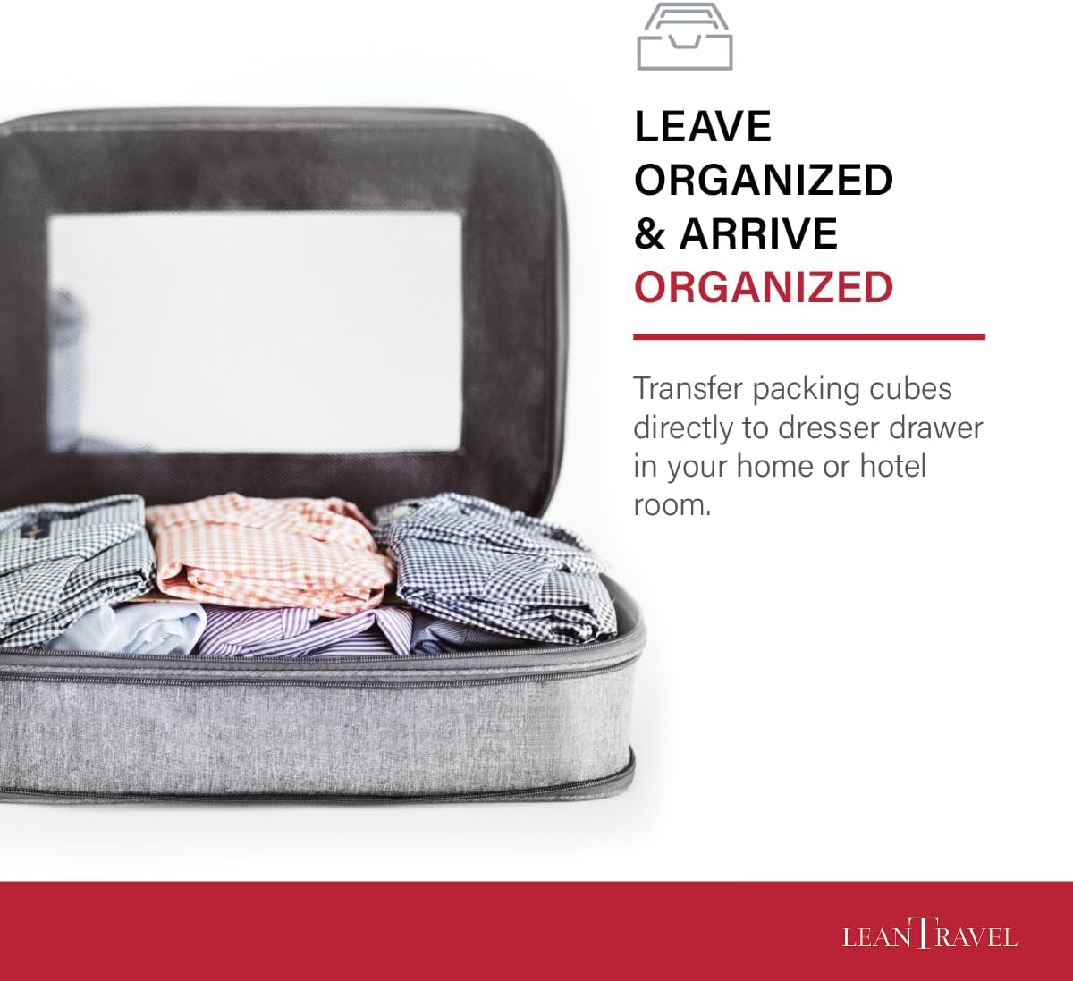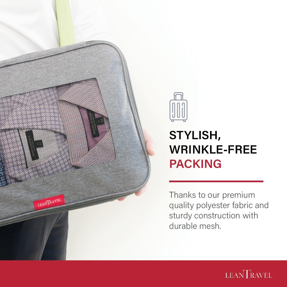 LeanTravel Compression Packing Cubes for Travel Organizers with Double Zipper (1 large piece, Grey)