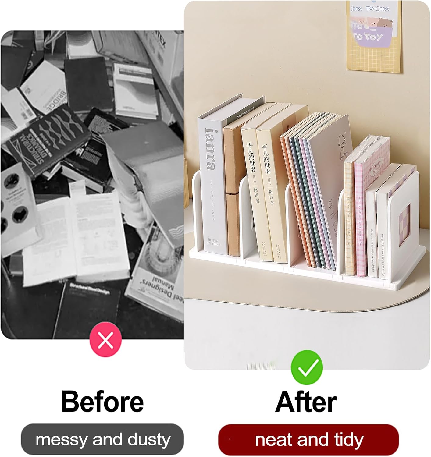 【Sturdy & Durable】: Our magazine organizer is made of high quality HIPS material, which is rugged, waterproof and moisture-proof, can support most items, 310 grams per package, stronger than the regular 250 grams. The large capacity desk organiser adjustable baffle plate is thickened, not easy to collapse, can firmly support the bookshelf.
