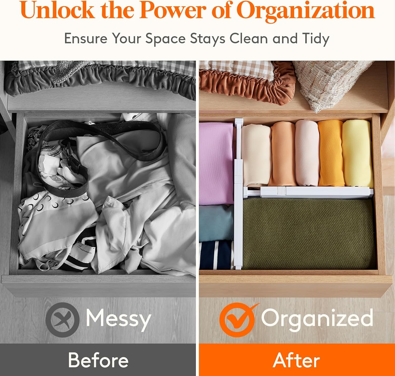 Versatile: These drawer organizers can be installed in any drawer of your house or office, and specifically designed to organize clothing, kitchen utensils, office supplies, cosmetics, bathroom essentials, and more. Ensuring your belongings stay neatly organized and easily accessible