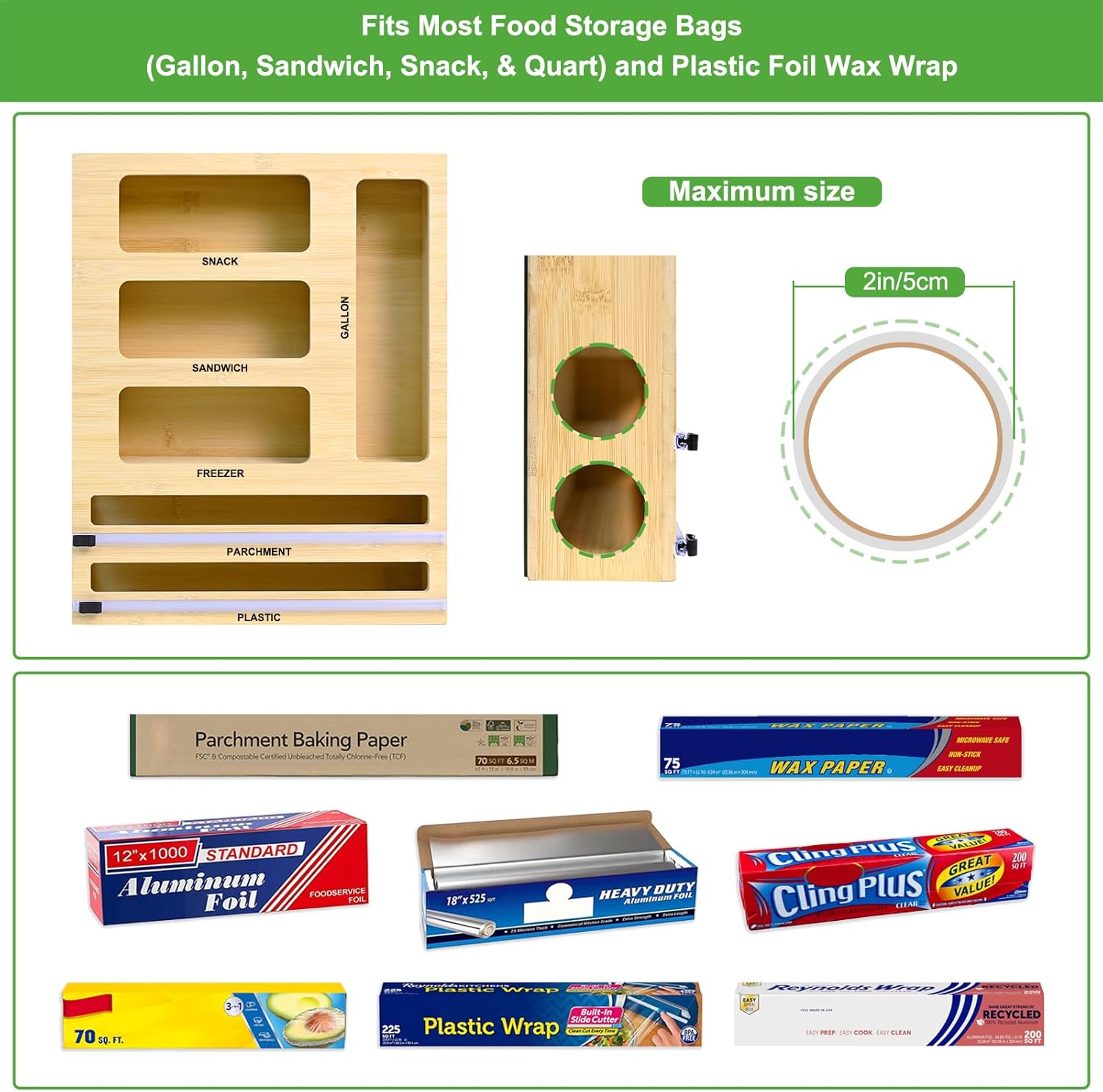 Effortless Cutting & Labeling System: The built-in slide cutter ensures clean, one-handed cuts for wraps and foils without fraying. Included labels help categorize contents (e.g., “Foil,” “Bags”) for quick identification, streamlining meal prep
