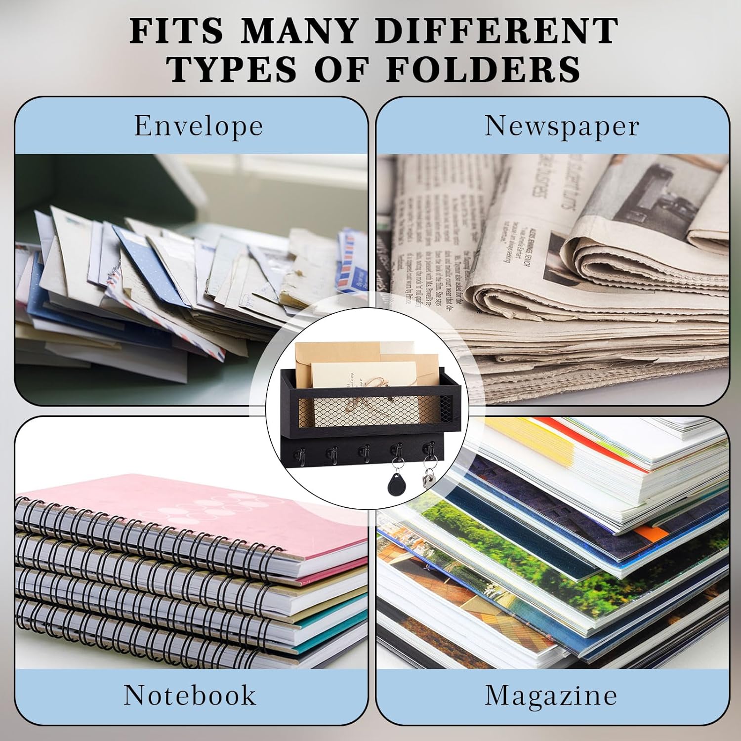 Space-efficient Design: this compact mail organizer measures approximately 11.0 x 6.3 x 3.1 inches, securely accommodating various sizes of envelopes and bills; Its size is ideal for conveniently storing envelopes and bills without occupying much space, making it an essential organizational tool for small areas
