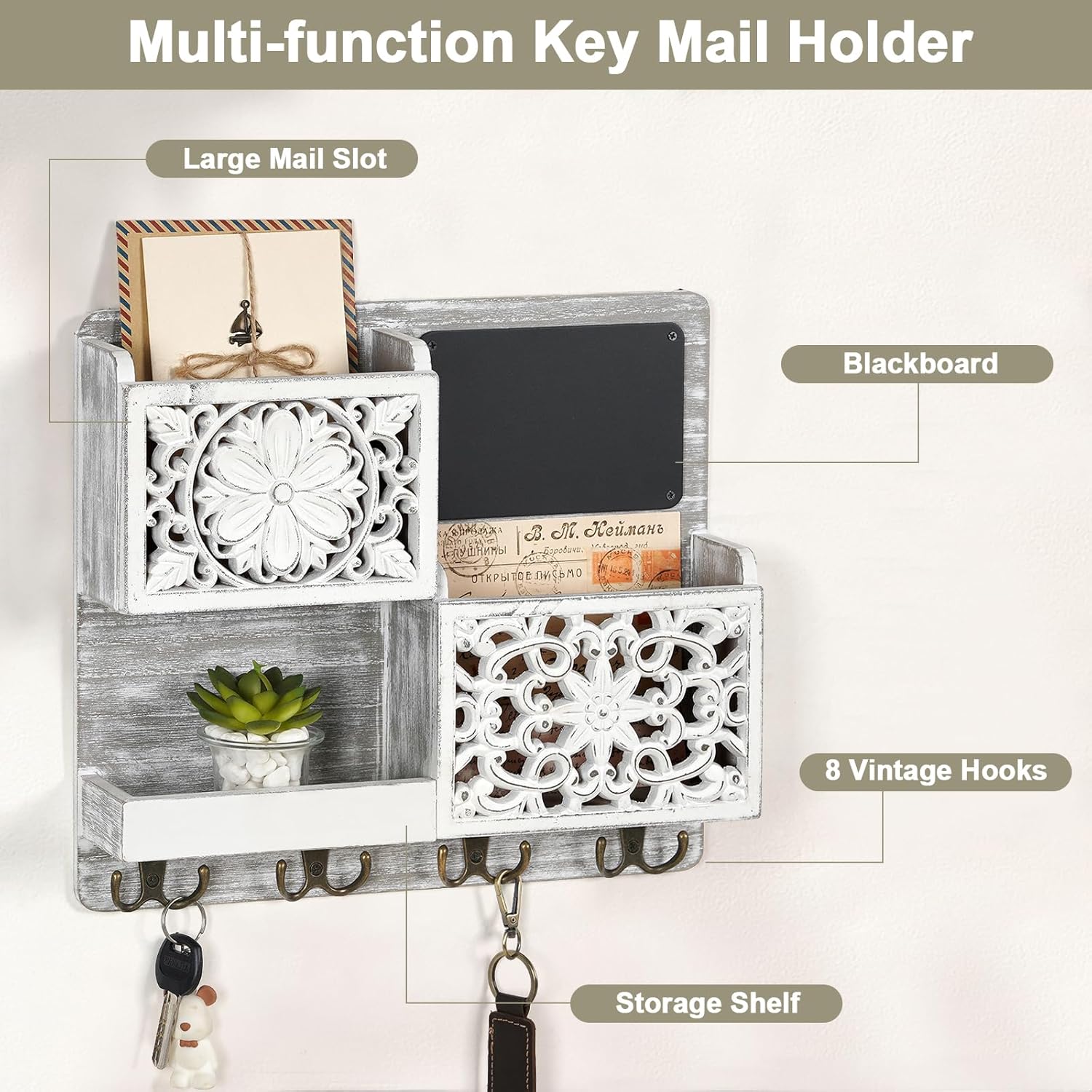 Functional & Space-Saving Mail Sorter:Maximize your space with our wall-mounted key holder. Designed to be compact and space-saving, it allows you to organize your essentials without taking up valuable floor space. Ideal for small apartments, offices, living rooms, or study areas