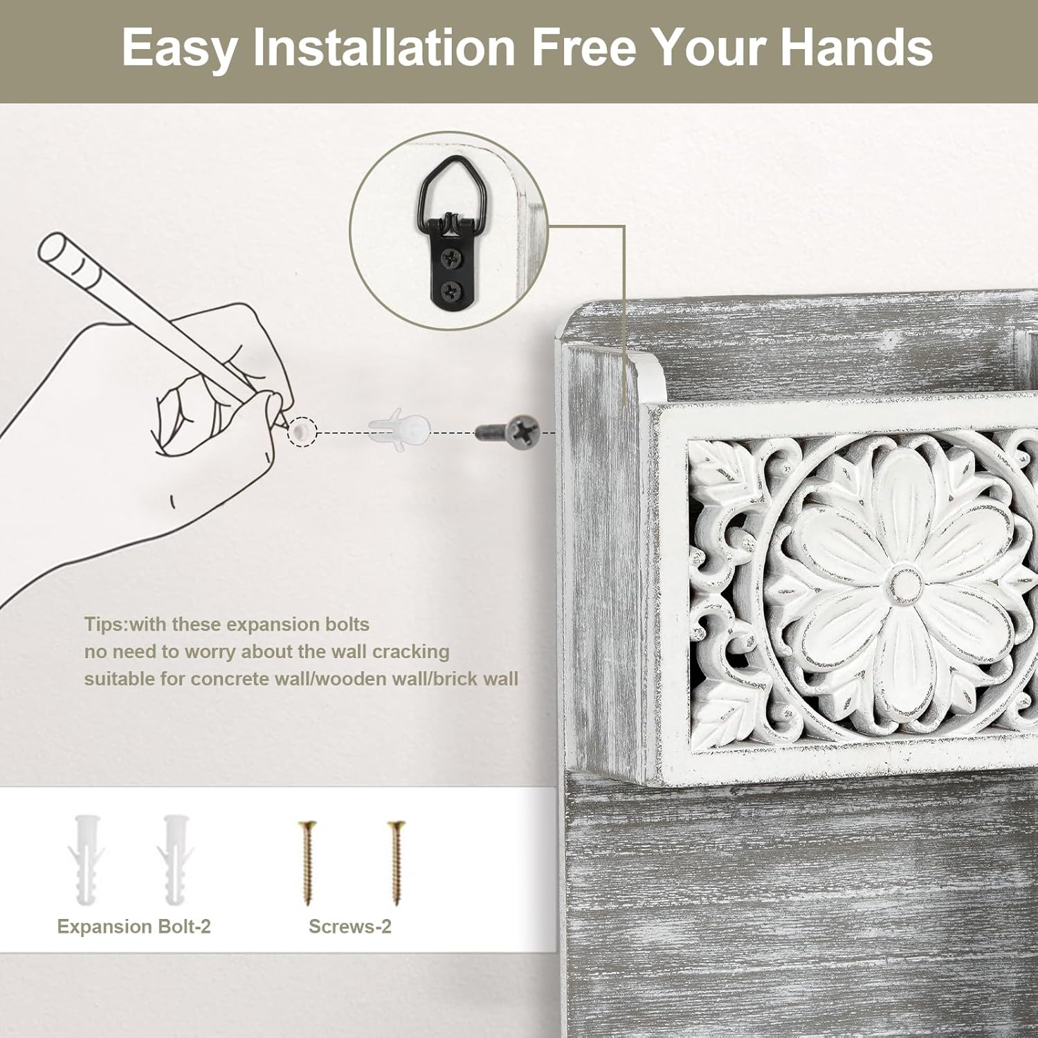 Stylish & Sturdy: Our key holder wall mount combines rustic charm with modern elegance. The hollow patterns add a touch of sophistication, while the sturdy wooden construction ensures durability and reliability. Perfect for entryway, hallway, bathroom, office