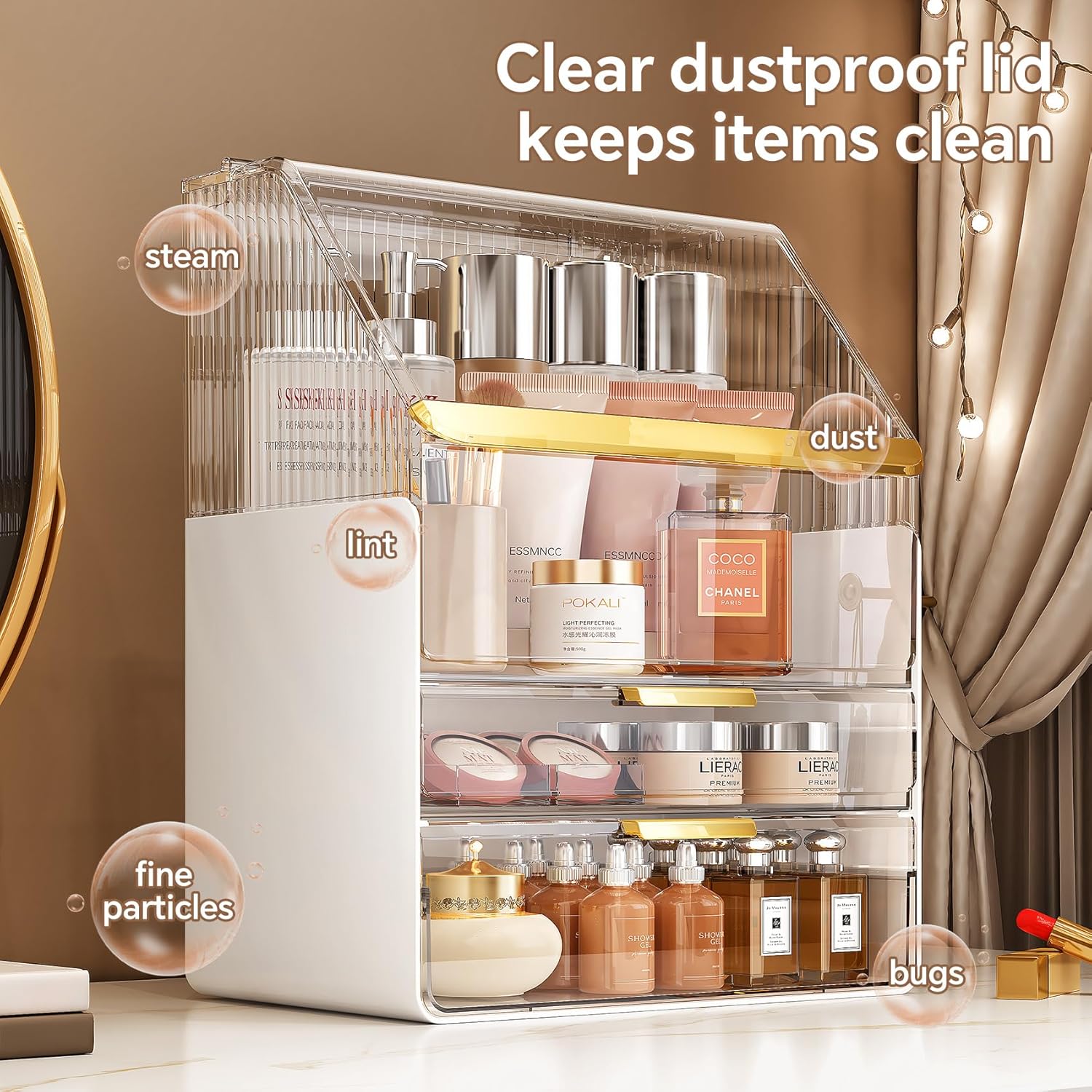Makeup Organizer Countertop with Lid, Skincare Organizers for Vanity, 3 Tiers Clear Makeup Storage Cosmetic Display Cases Holder for Bedroom Bathroom Dresser Desk Countertop