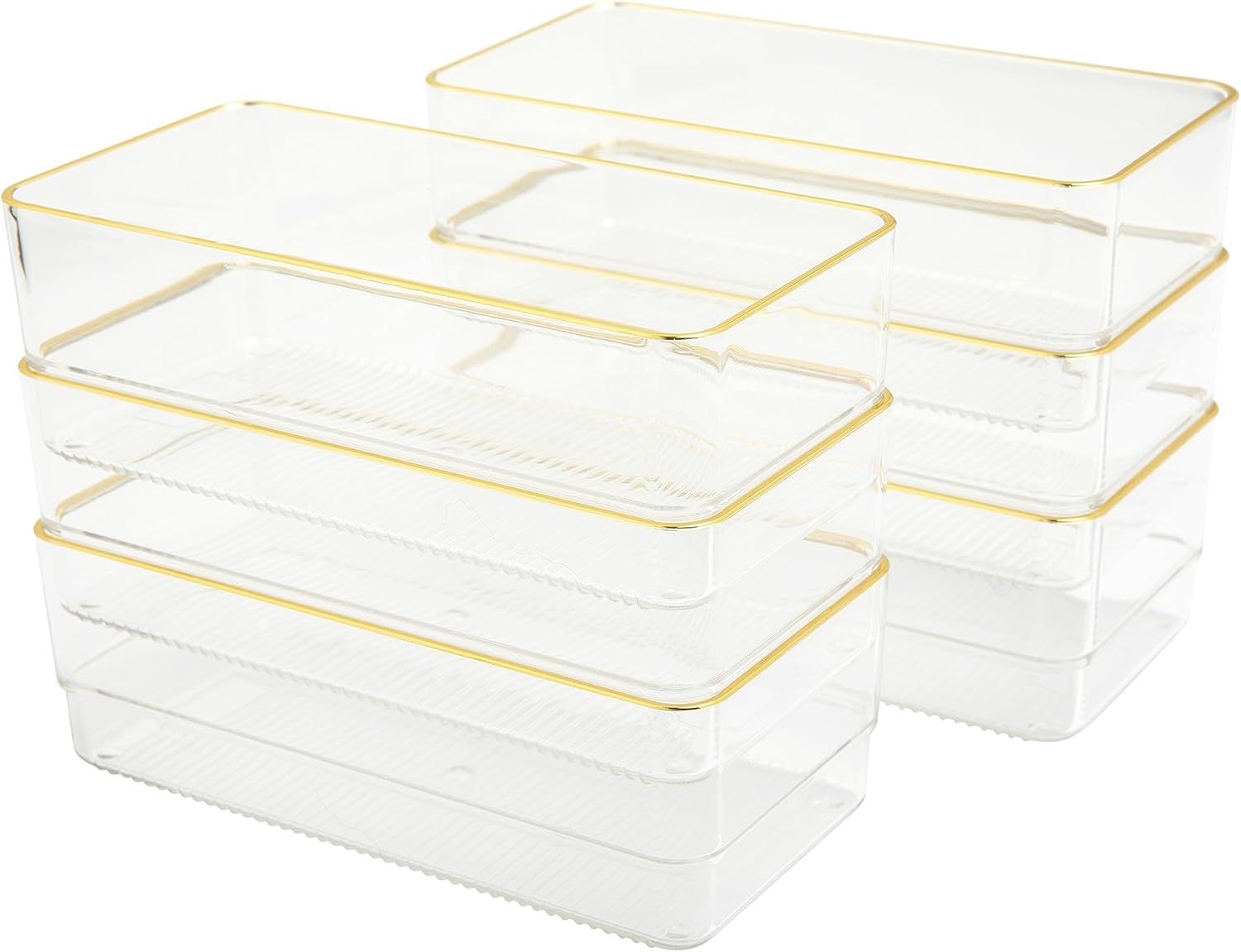 Martha Stewart Kerry Plastic Stackable Office Desk Drawer Organizers, 6″ x 3″, 6 Pack, with Gold Trim