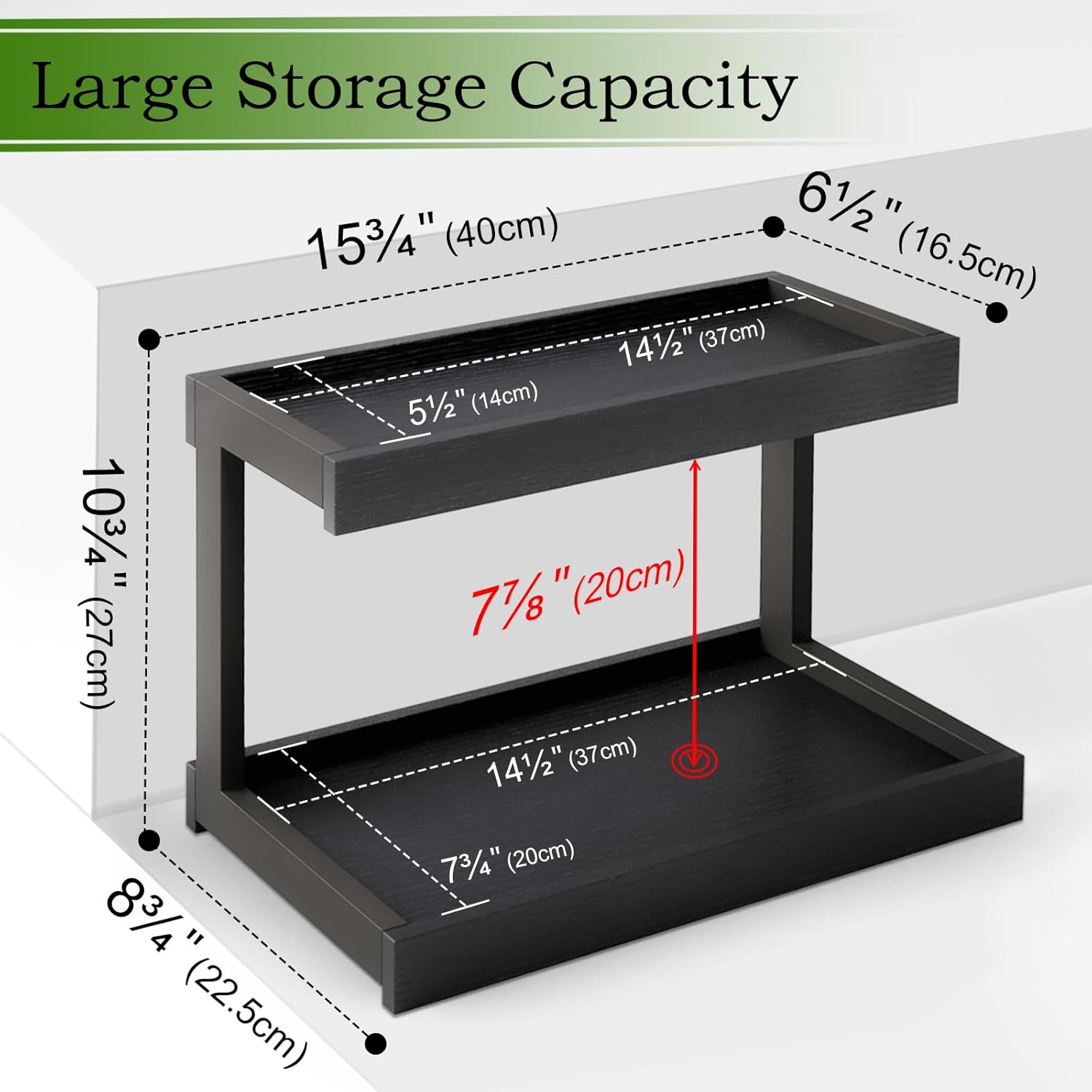 【Large Storage Capacity, Space Saving】 Two-layer design can provide more storage space. Large size, top shelf measures 15.75″x6.5”, bottom shelf measures 15.75″x8.86”.