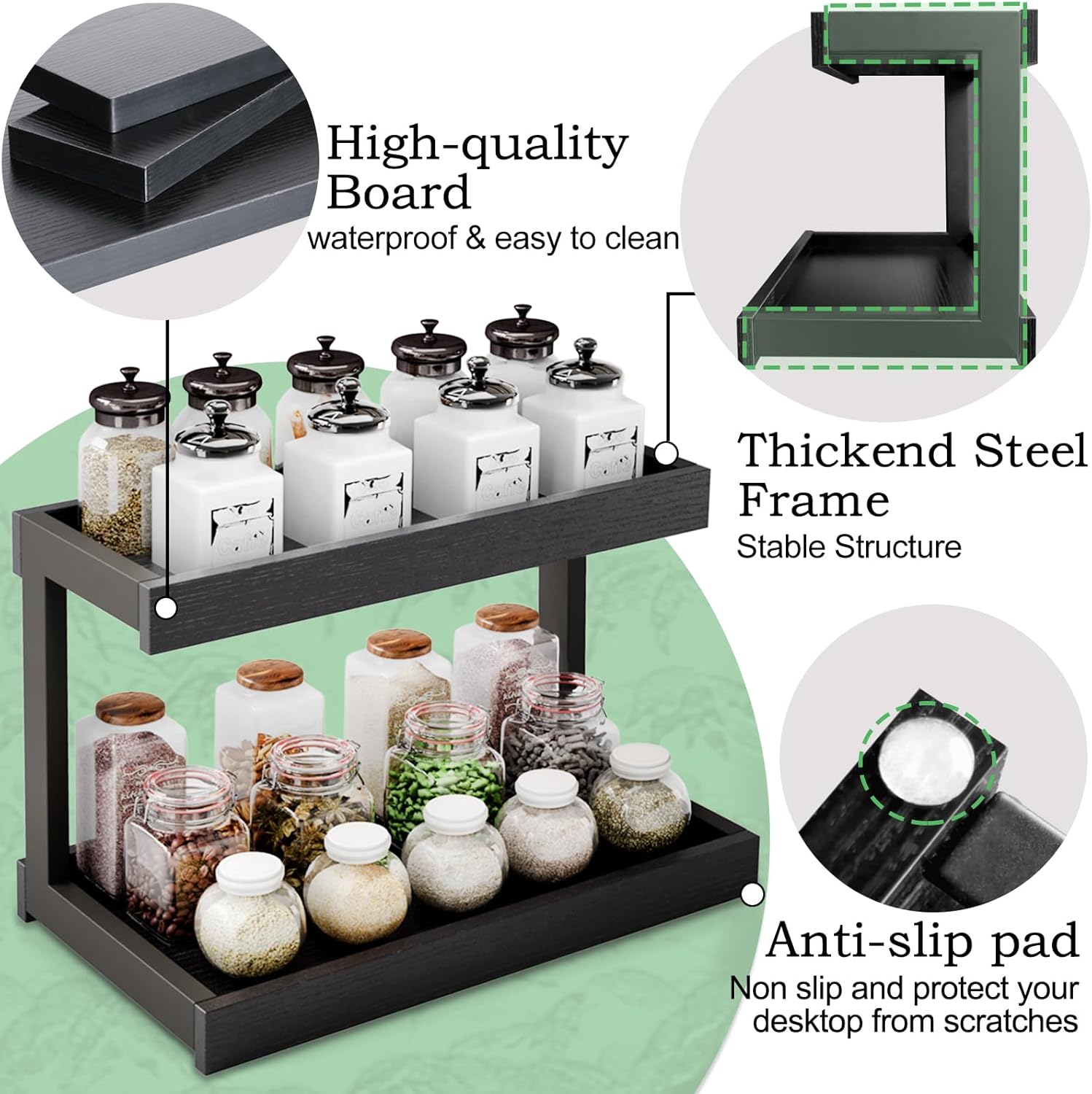 MARTY 2 Tier Spice Rack Organizer for Countertop, 15.8”L Coffee Station/Bathroom Organizer Countertop, Counter Shelf Desktop Storage Organizer for Kitchen, Bedroom, Office (Black)