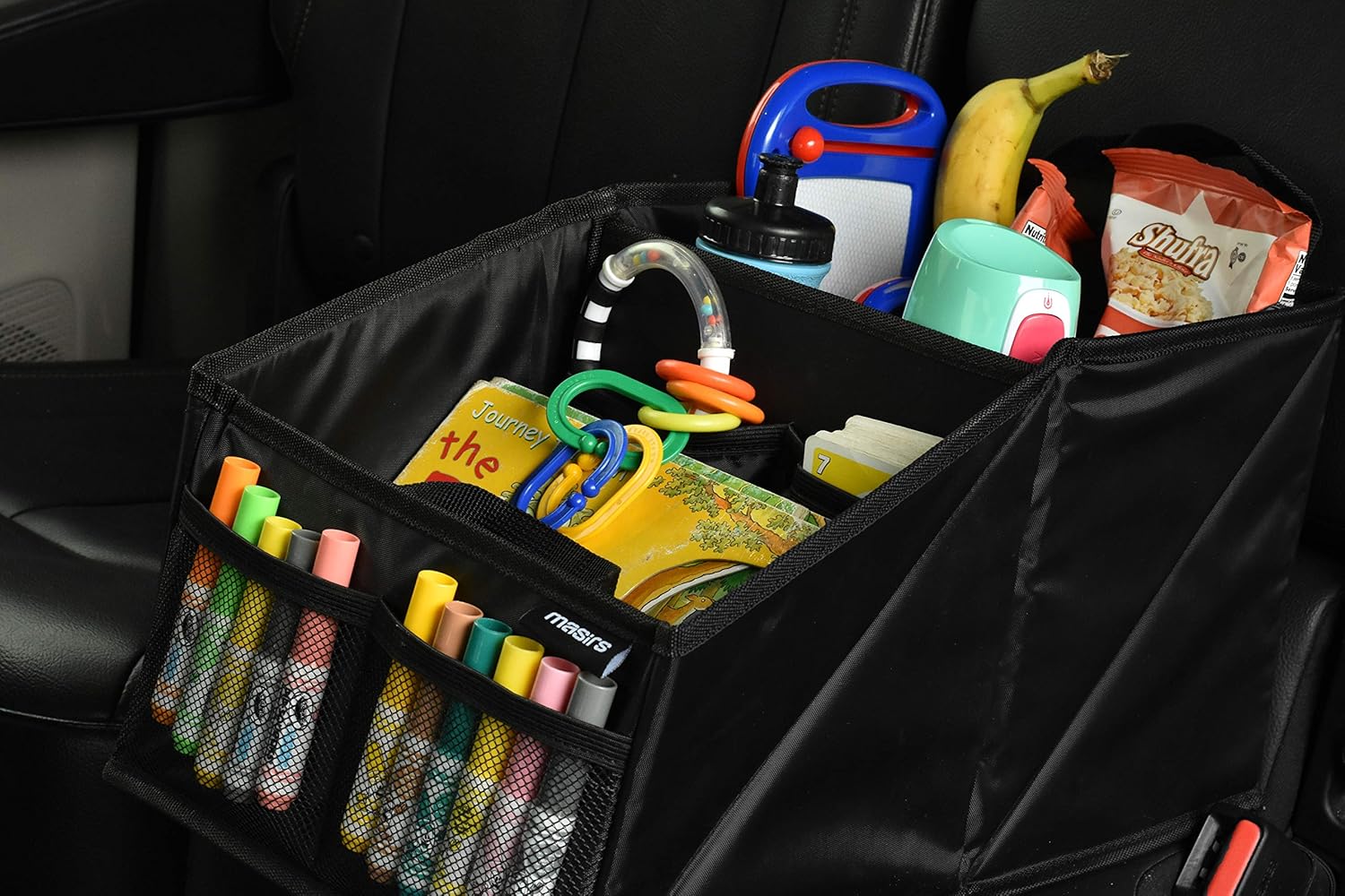 Breathe a sigh of relief! The Masirs behind seat car organizer is here to make your life easier and road trips with your kids as fuss-free as possible!