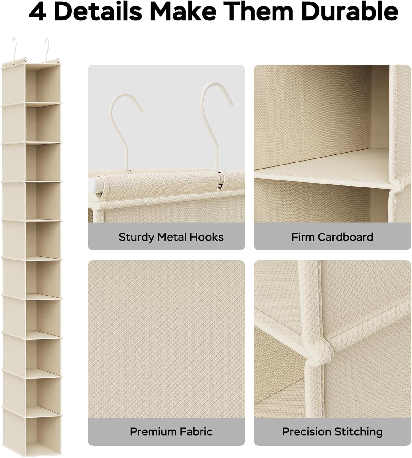MAX Houser 10-Shelf Hanging Shoe Shelf Organizer, Hanging Shoe Storage for Closet (Beige)