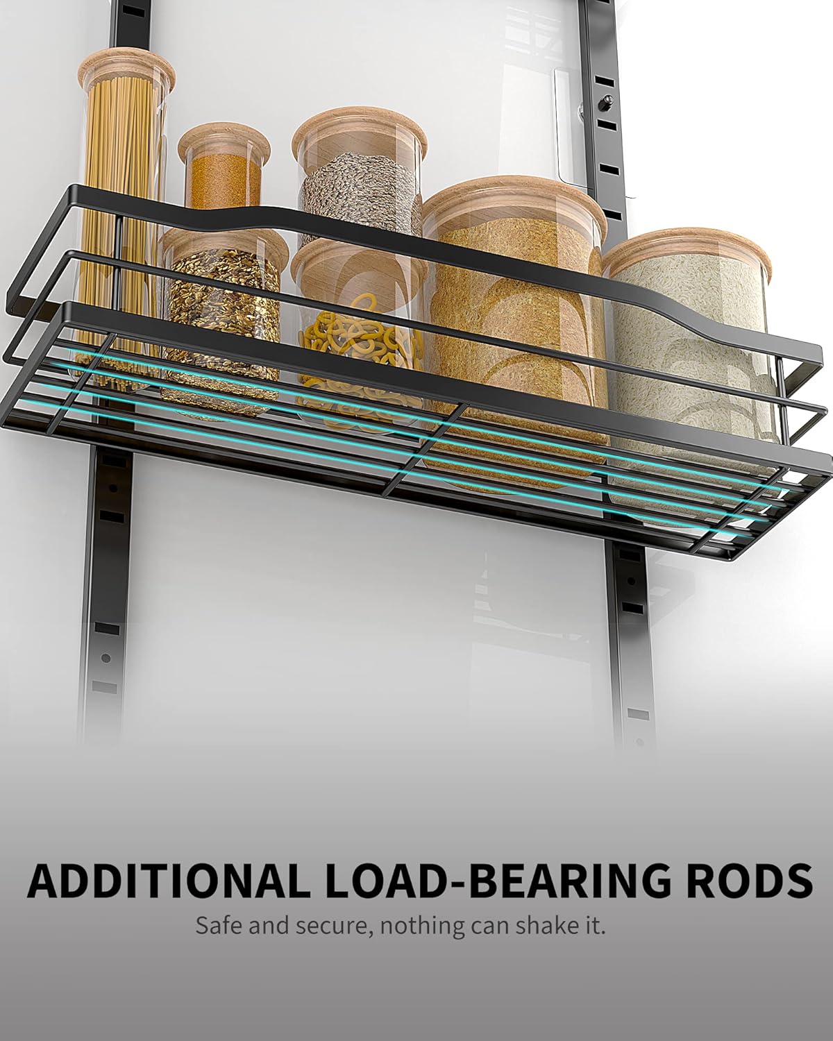 Durable & Strong: Made with high-quality, durable metal, our pantry organization can withstand the weight of heavy cans and jars, keeping your items secure and preventing them from falling off. It’s your home organization and kitchen essentials. Please note: Measure your door to see if it fits the size of this product before choosing it, otherwise the door will not close.