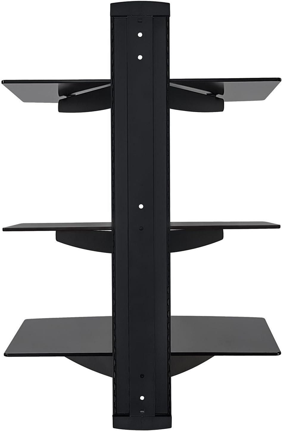 Mount-It! Floating Wall Mounted AV Entertainment Shelf for DVD Players, Cable Boxes, Audio, Gaming Systems, 3 Black Tempered Glass Height Adjustable Shelves (52.8 Lbs Capacity)