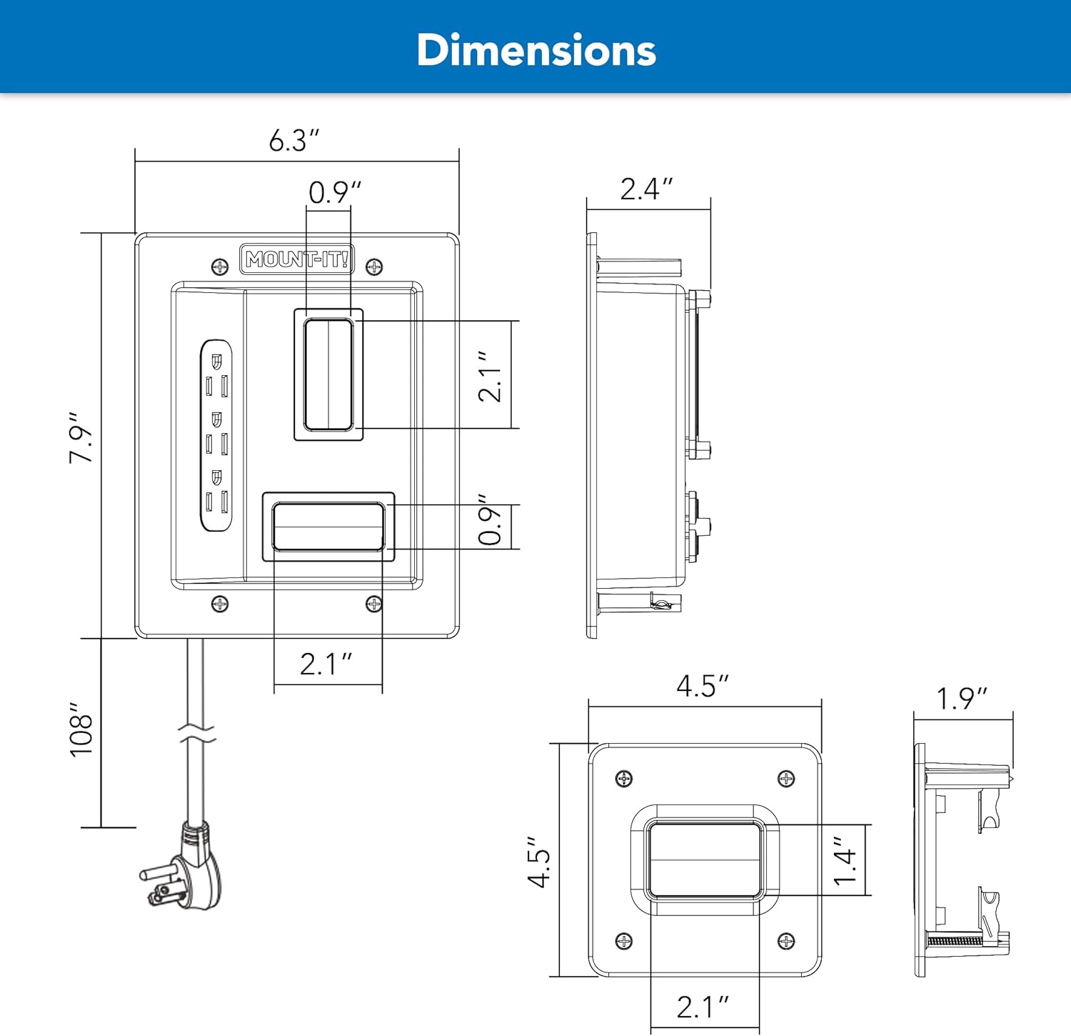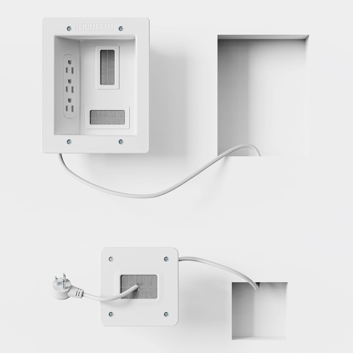 Mount-It! in-Wall TV Cable Concealer Kit with Recessed Power – Triple Outlet, 9ft Cord, and Hand Saw – Easy, Safe Cable Management for Organized TV and Home Theater Setups