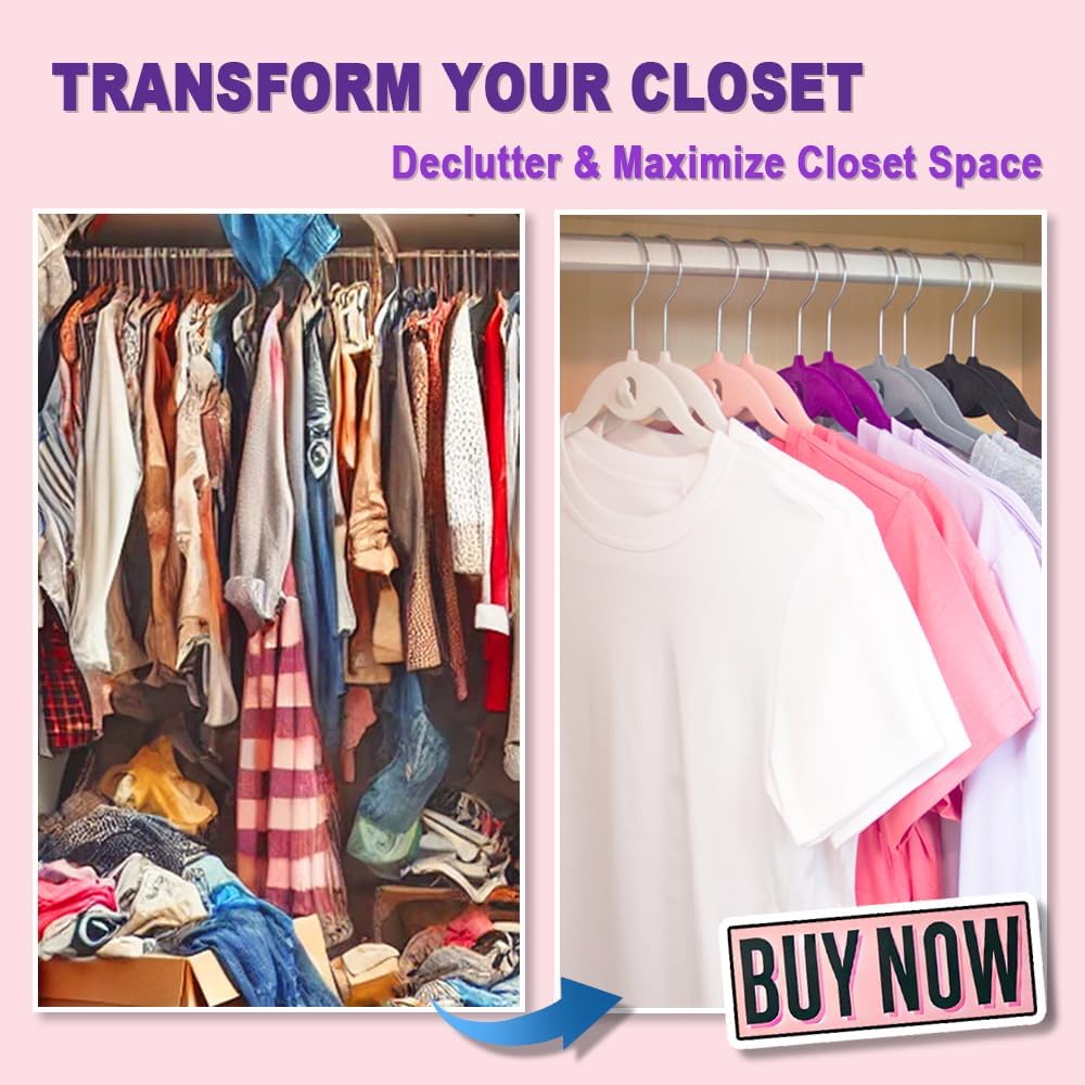 Don’t wait to experience the benefits of an organized, clutter-free wardrobe. With our 50-piece velvet hanger set, you’ll not only save space but also protect your clothing. Get yours today and enjoy a beautifully organized closet in no time!
