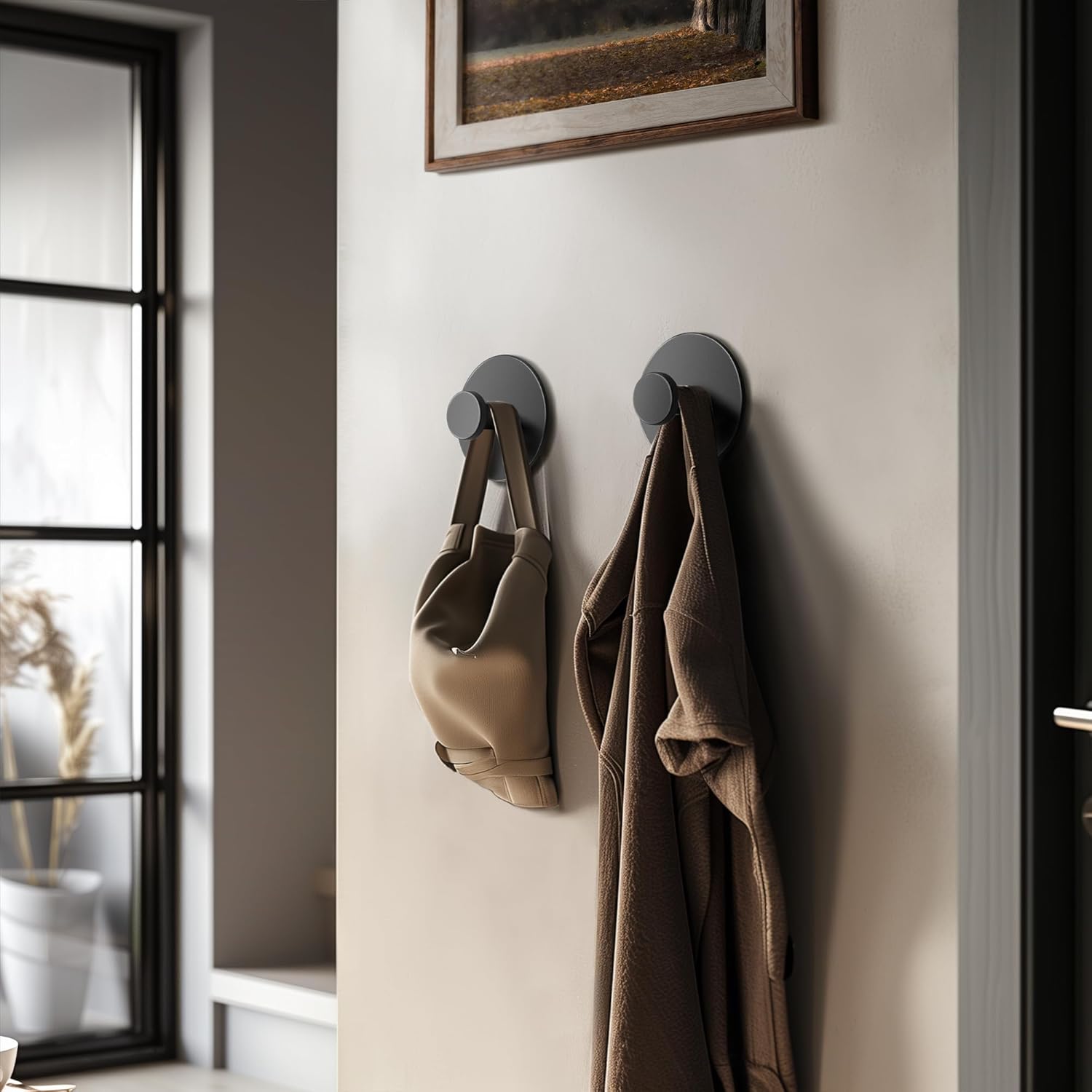 Multifunctional Towel Hooks for Bathroom Wall – Extra Sticky Stainless, Holds up to 12LB, Coat Hooks Wall Hooks, Adhesive Door Holder Hanger Shower Accessories, Matt Black Heavy Duty