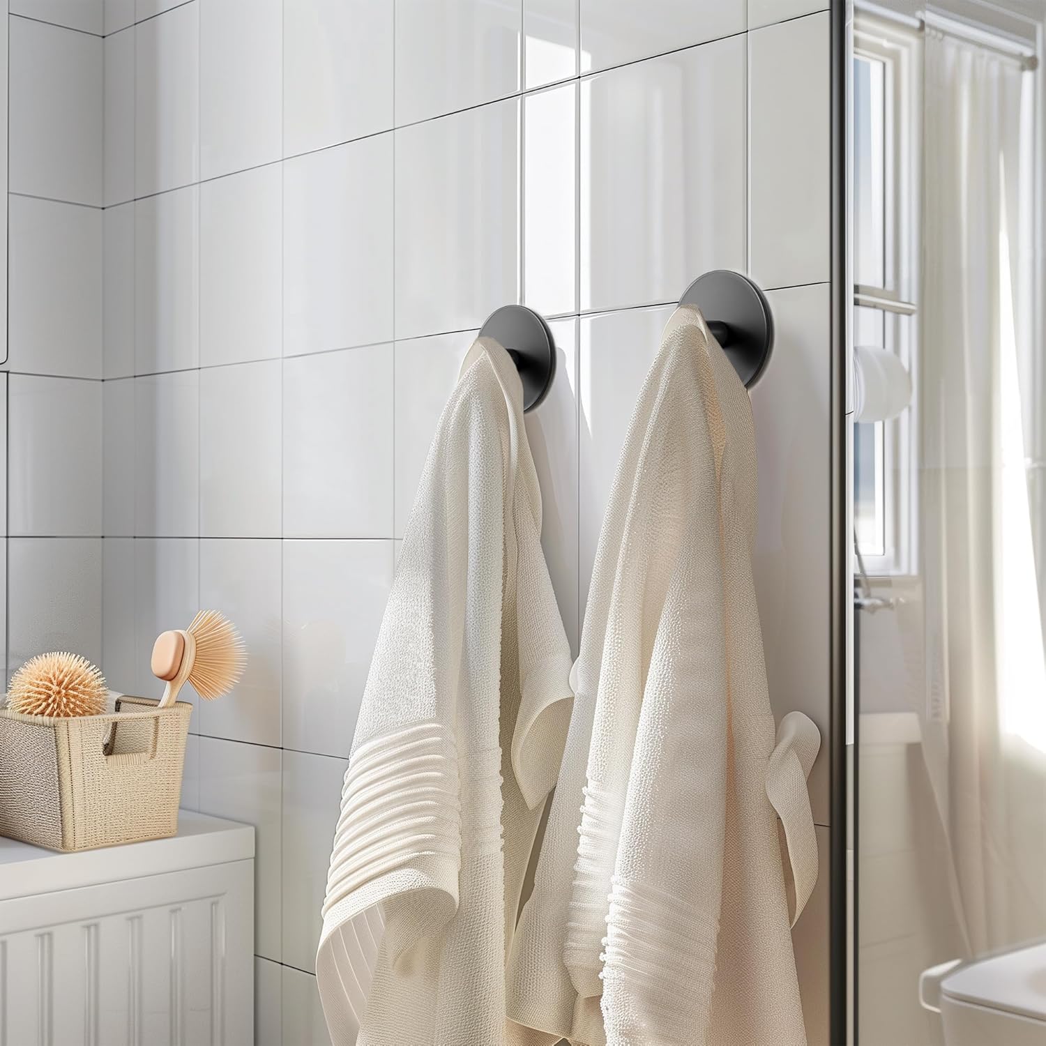 【Widely Use Utility Hooks】 It can be used in bathroom, living rooms, bedrooms, and kitchens to hang towel, razor, loofah, robe, coat, and bath items.