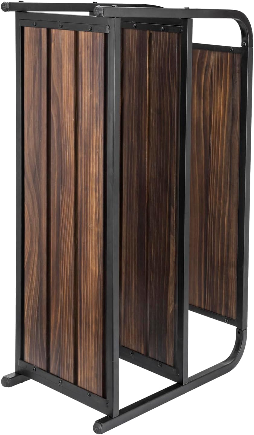 Add storage in your entryway, foyer, hallway, closet, mudroom, or garage, while creating urban industrial style with this brunt brown wood and matte black metal shoe storage bench.