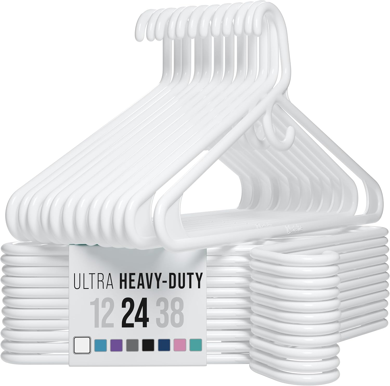 NEATERIZE Ultra Heavy Duty Plastic Clothes Hangers – White – Durable Coat, Suit and Clothes Hanger. Perchas De Ropa (24 Pack – White)