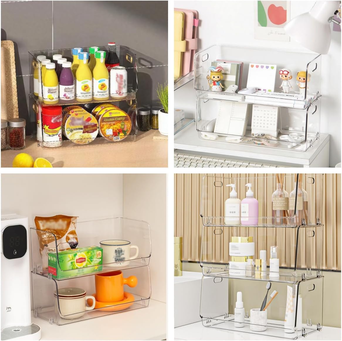 Wide Application: These clear organizing bins are great for organizing countertops, pantry shelves, cabinets, closets, bedrooms, bathrooms, craft rooms, offices, play rooms, living rooms, garages, or any room of your home, apartment, condo, dorm room, RV or camper.