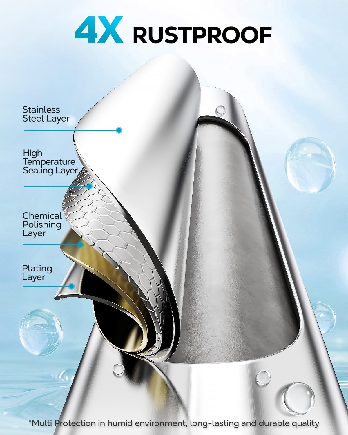 Stainless Steel: These shower shelves are easily clean and rustproof. Plus, it features an elegant look that enhances your shower necessities.
