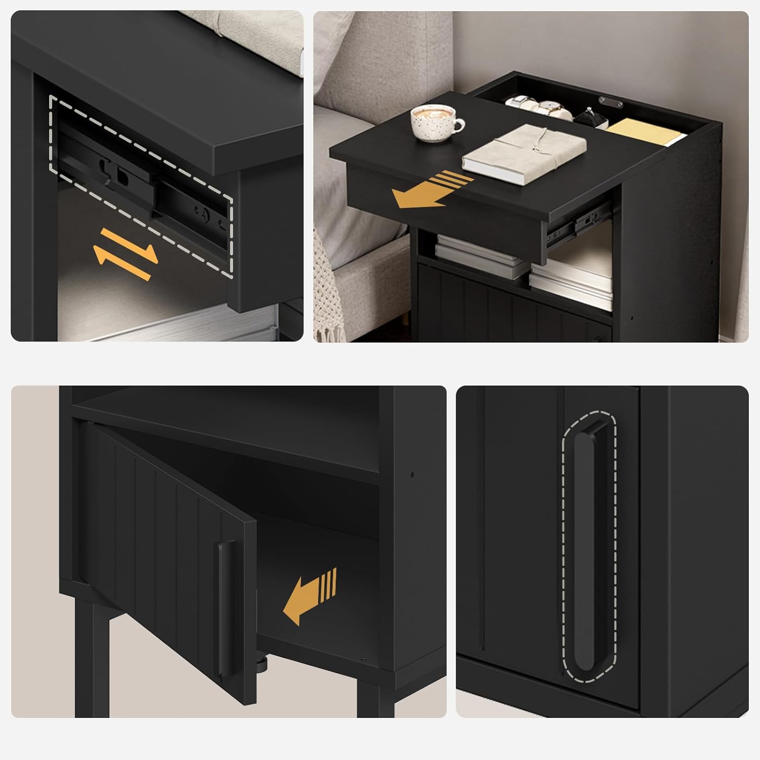 Concealed Drawer: This nightstand provides a concealed drawer to discreetly store personal belongings such as jewelry and wallets. It safeguards your privacy while ensuring everyday items remain effortlessly accessible whenever needed