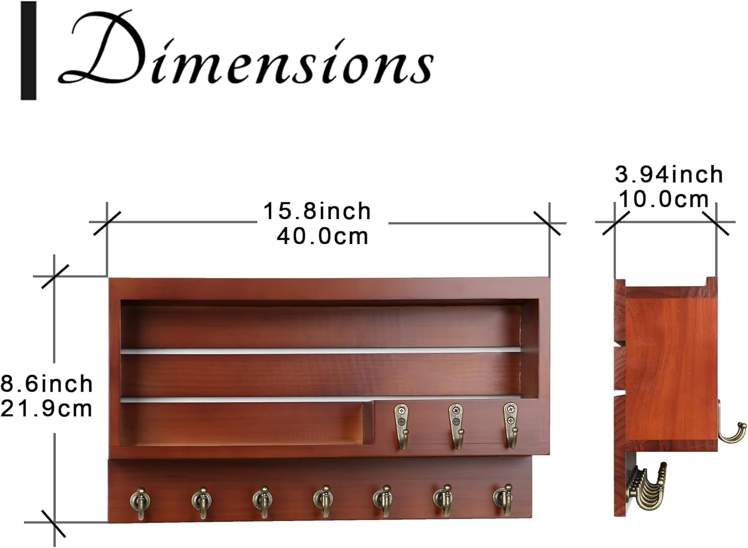 Bronze key hooks add a premium vibe to this product and the 10 hooks in 2 style can store more keys.