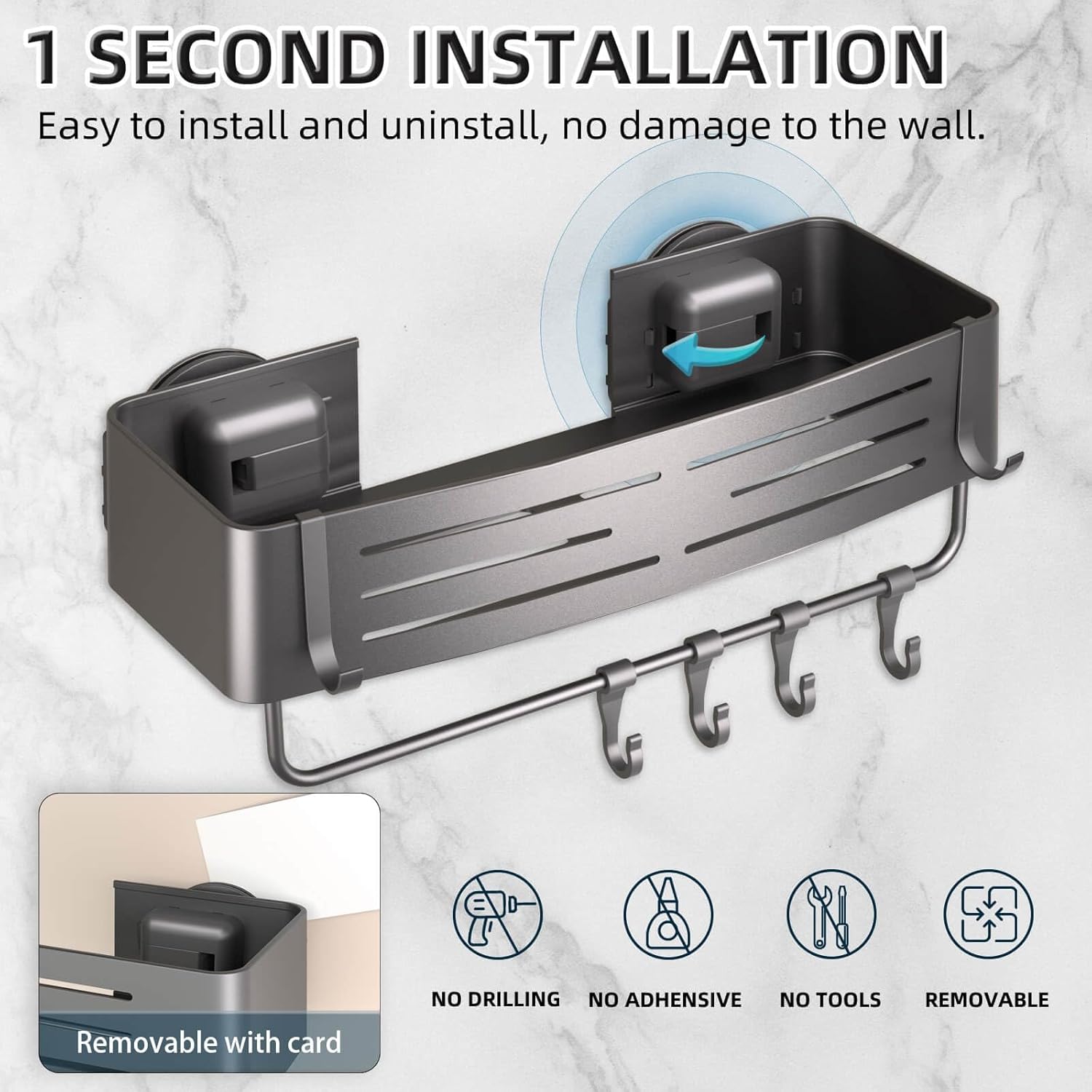 Special Design for Superior Performance: Featuring a bionic octopus tentacle design, the TPE suction cup provides exceptional wall adhesion and can support up to 10 kg (22 lbs). Crafted from high-quality aerospace aluminum, the shower shelf is durable, scratch-resistant, and built to last, ensuring long-term reliability in your bathroom or kitchen