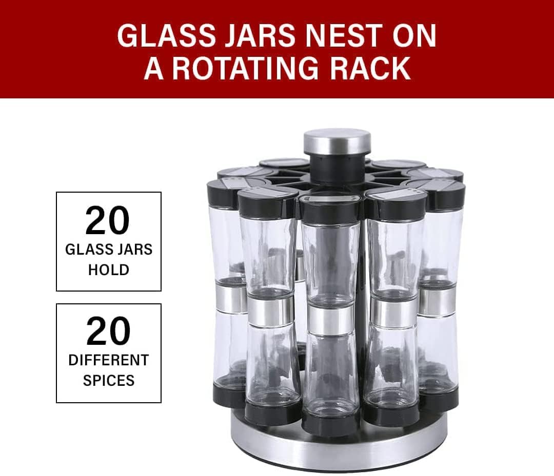 Orii Hourglass Kitchen Spice Rack with 20 EMPTY jars with FREE Stainless Steel Funnel and Labels