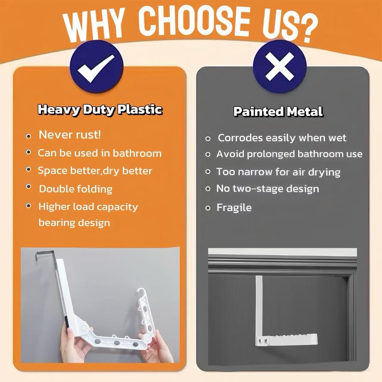 【Ultimate Ease of Use & Portability】No tools, no hassle—just hang and unfold. Designed for the on-the-go life, it collapses into a slim, portable package for travel and transforms any door in bathrooms, apartments, or RVs into an instant drying station.