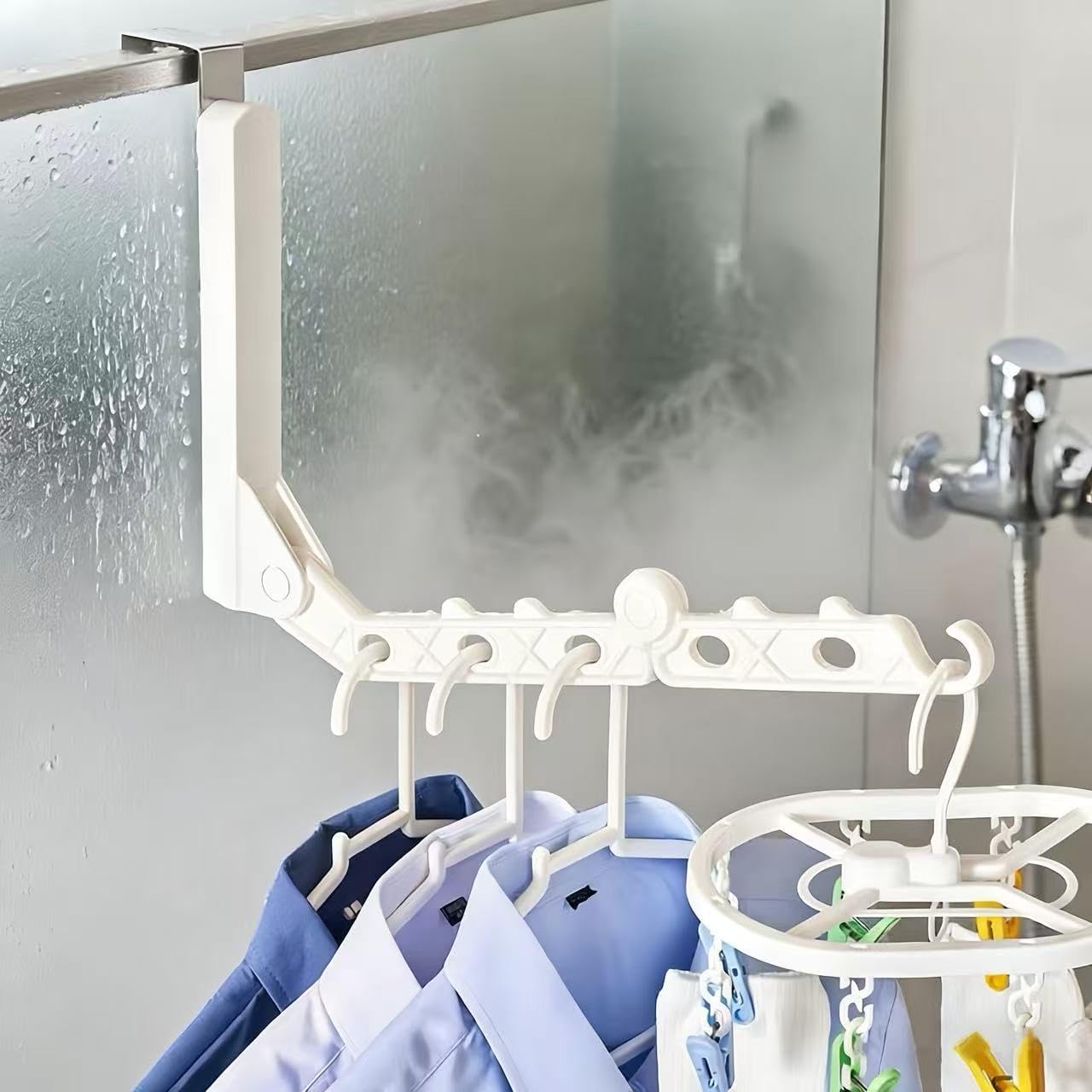Over The Door Hanger, Rust-Free Plastic Clothes Drying Rack for Bathroom, Space Saving Foldable Heavy Duty Clothes Rack for Laundry Room, Dorm & Apartment | Fits Closet, RV (White)
