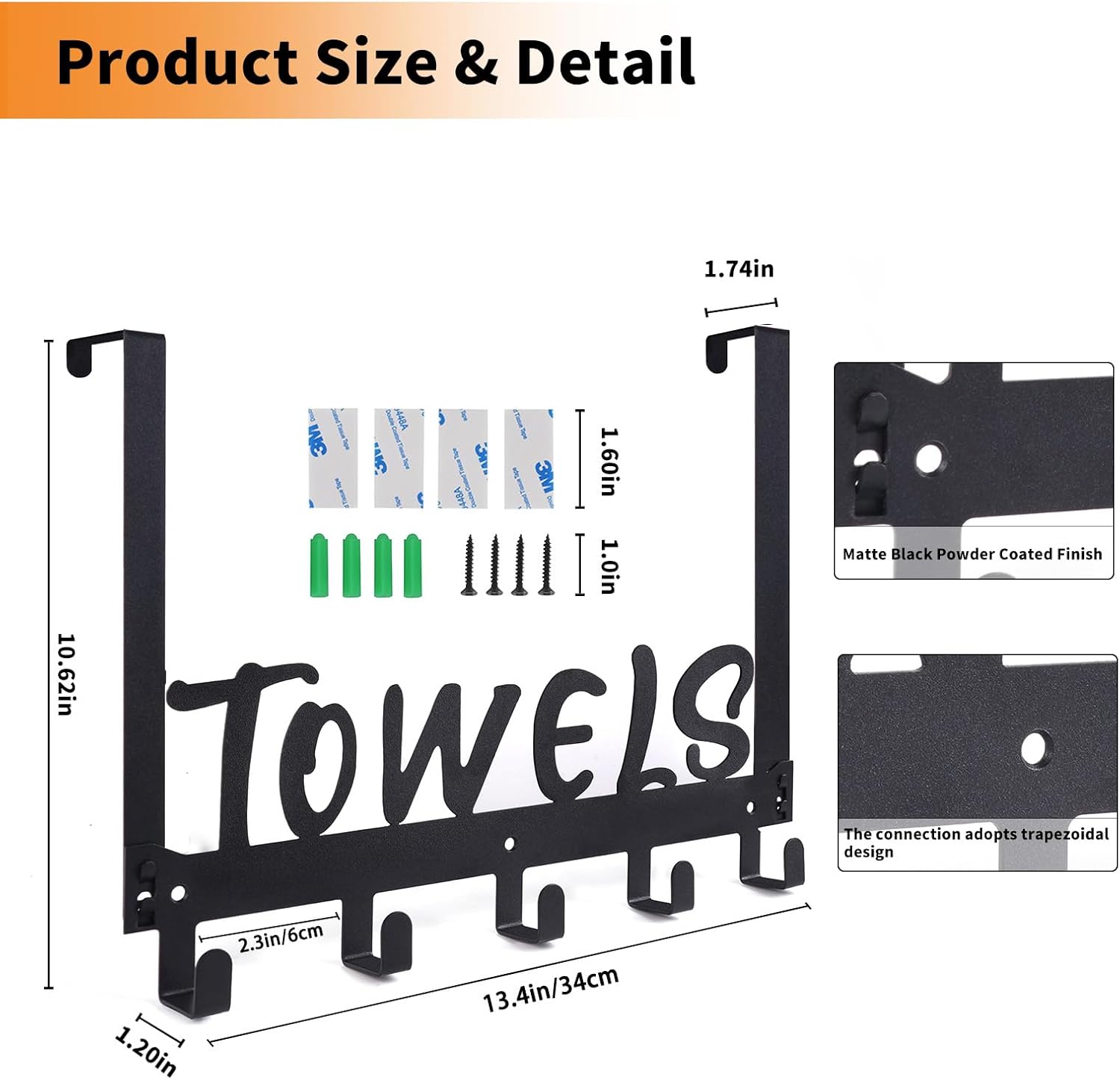 Two Installation Methods: Choose between no-drilling over the door installation or wall-mounted installation. This black versatile towel holder and towel hook can be easily hung over any standard door or securely mounted on the wall
