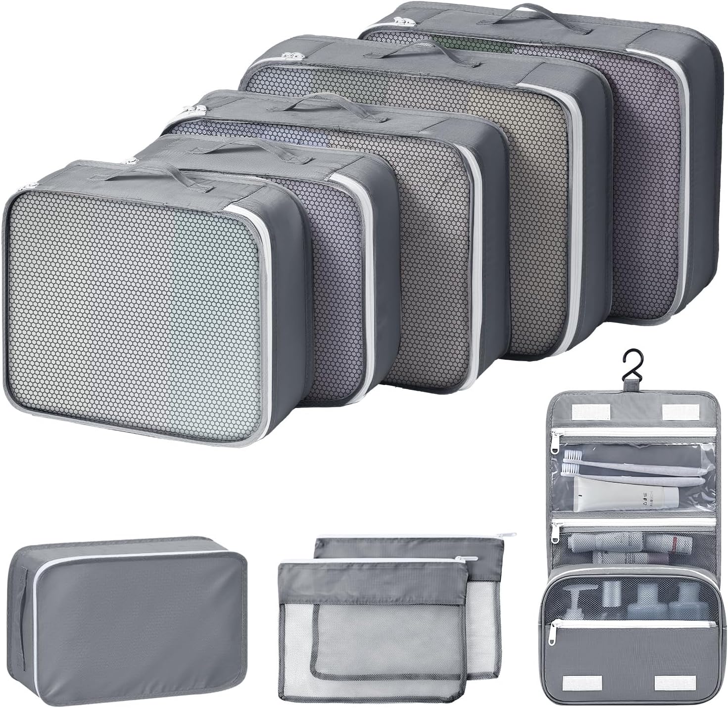 Packing Cubes for Travel 9 Set, Luggage Organizer Bags Organizer for Luggage, Travel Packing Organizers for Clothes Shoes Toiletries Data Cable.(Grey)