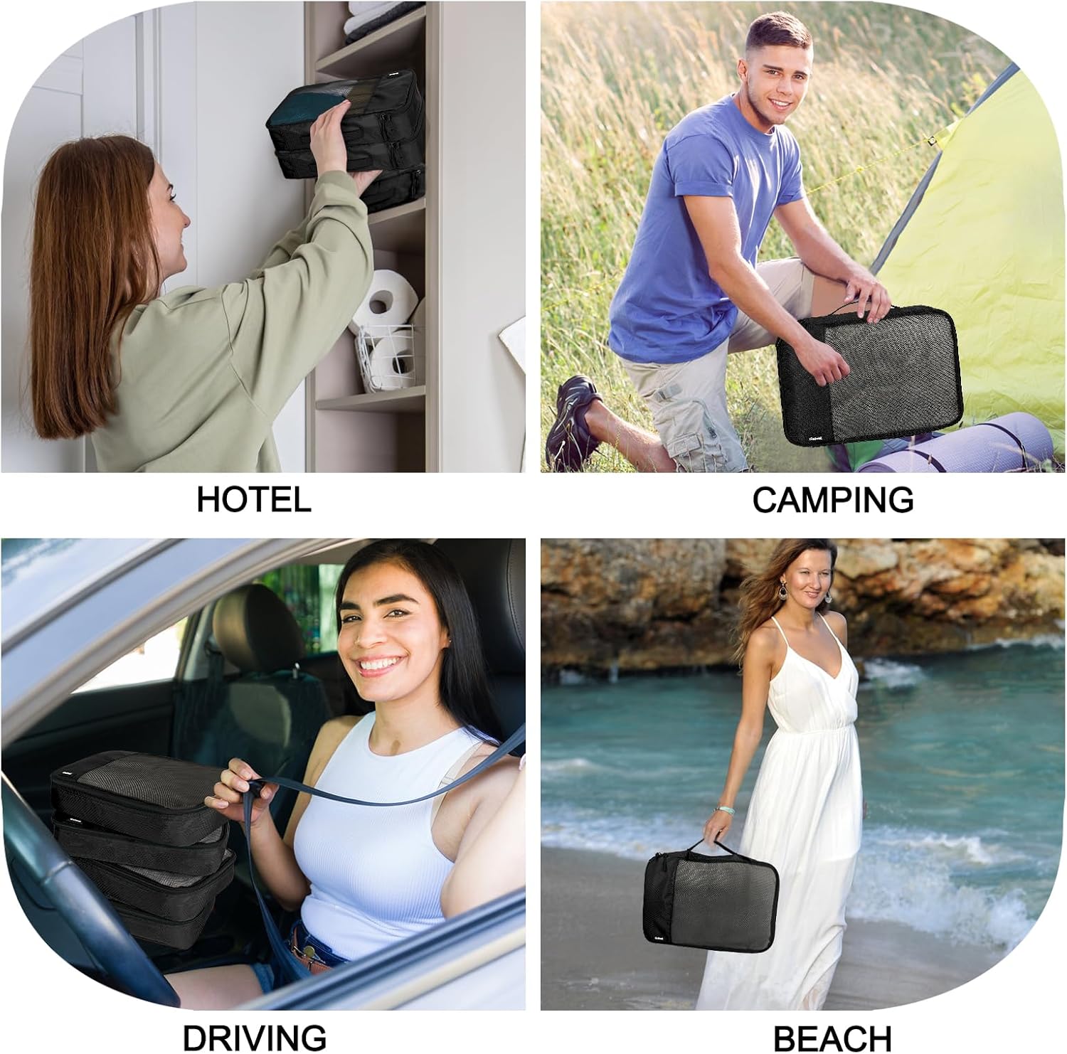 Easy Organization & Visibility:Mesh top panels let you quickly check contents without unzipping—no more rummaging through luggage to find what you need. Each cube features a convenient webbing handle for easy grabbing and carrying. Plus, these travel packing organizers are machine-washable, making cleanup a breeze