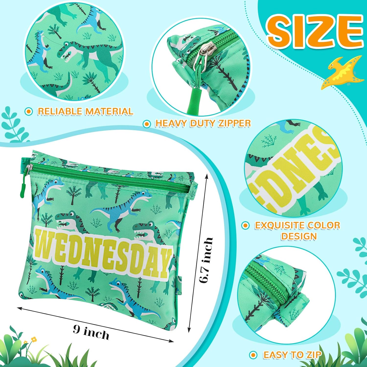 Dinosaur Theme Design for [every Day of the Week]: These kids travel bags are printed with dinosaur theme patterns, which are vivid and colorful; The surface is marked with: Monday, Wednesday, Thursday, Tuesday, Friday, Saturday and Sunday. They can accommodate most of your child’s travel necessities, including clothes, toiletries, etc., which is an ideal choice for children’s travel