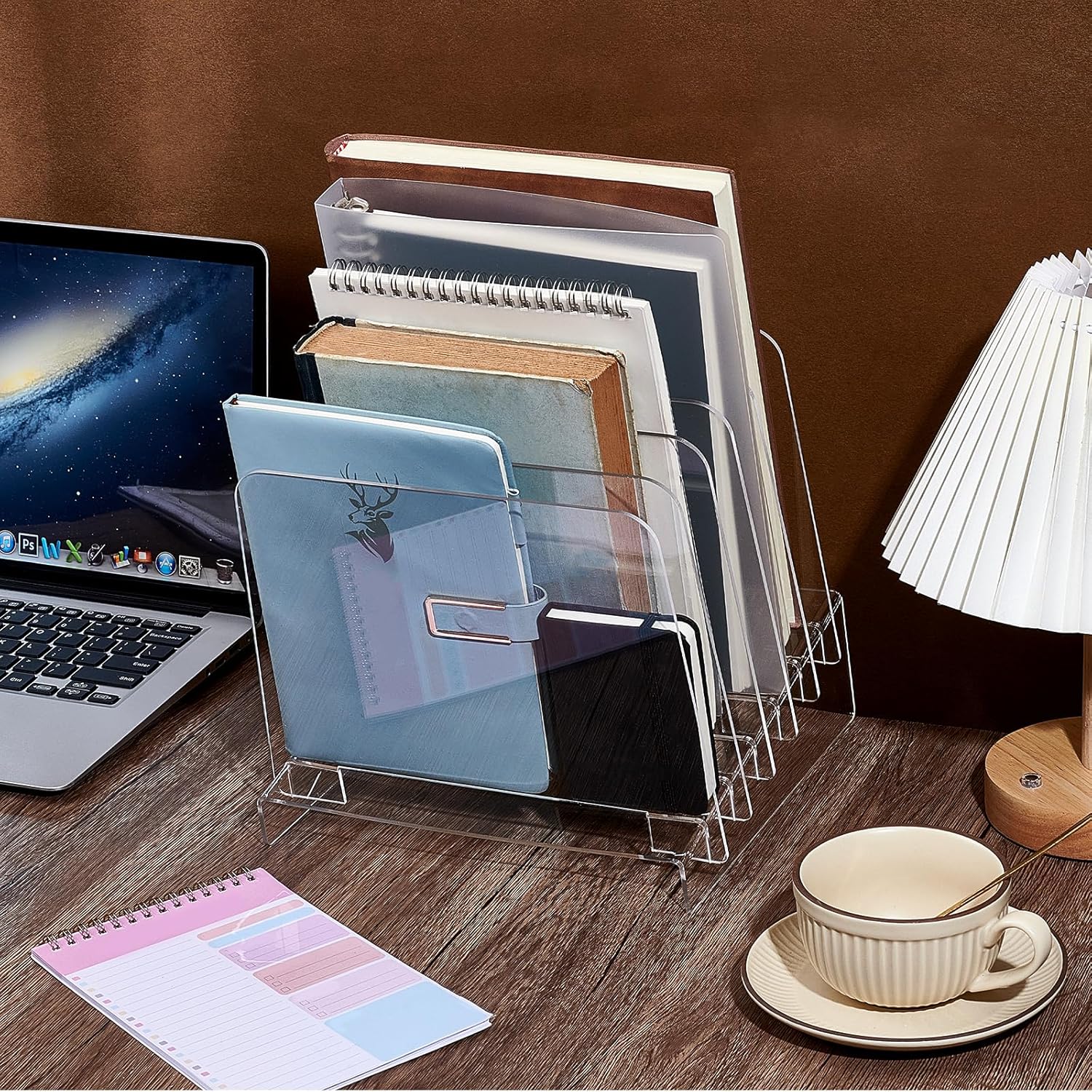This premium acrylic desk file organizer combines modern clarity with everyday practicality. Built with sturdy, glass-like acrylic, it provides 5 wide vertical sections for sorting documents, notebooks, binders, magazines, folders, and mail. Ideal for anyone who wants a cleaner, faster, and more efficient working environment.