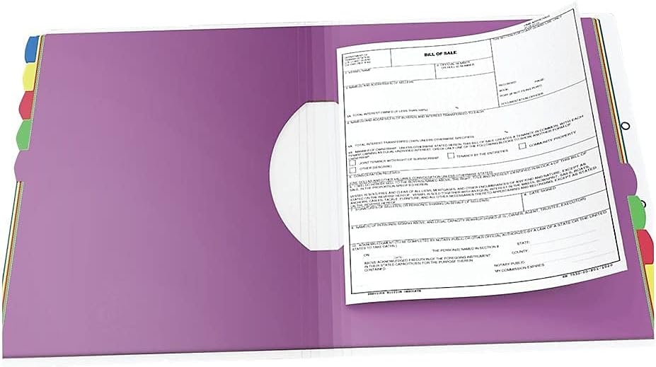 Ten tabbed dividers are color-coded for at-a-glance organization