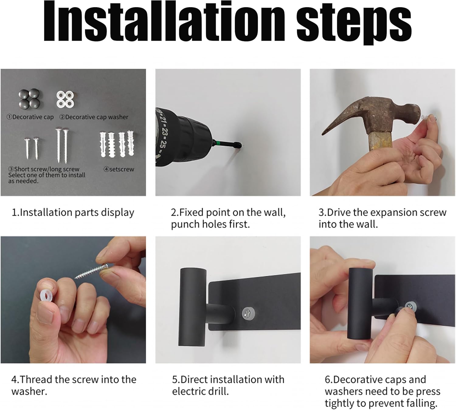 Easy to install: Wall mounted hangers are easy to install on walls or wooden doors; The installation hardware includes screws, plastic expansion anchors, and washers