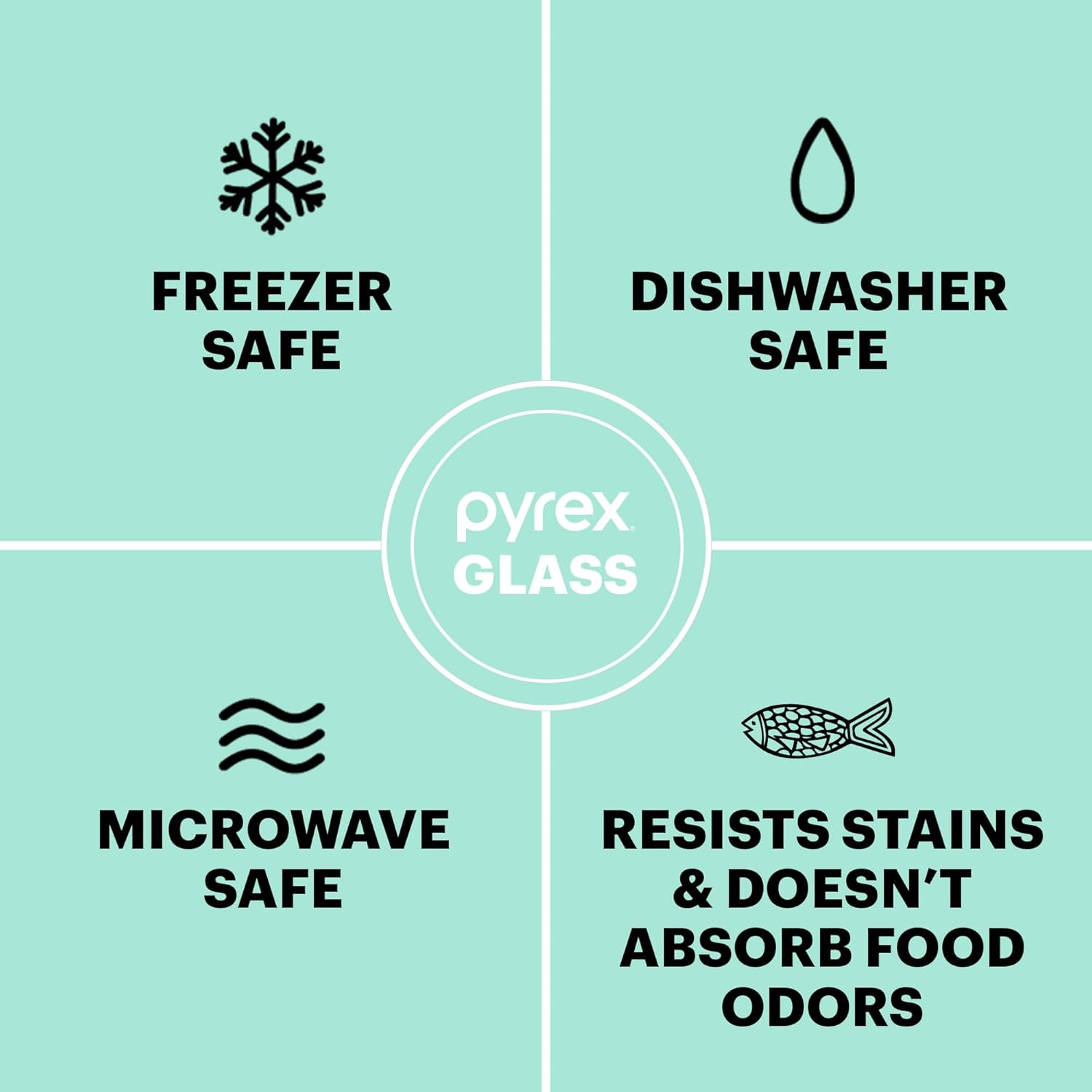 This multi-tasking glass storage container will have you organized in the kitchen and ready for anything. Store everything from leftovers to snacks, and make weekly meal prep a breeze. Durable, pure Pyrex® glass is stain- and odorresistant, and stands up to the microwave, dishwasher and freezer, use after use. Securefit lids keep food fresh, tasty and ready for meals on the go.