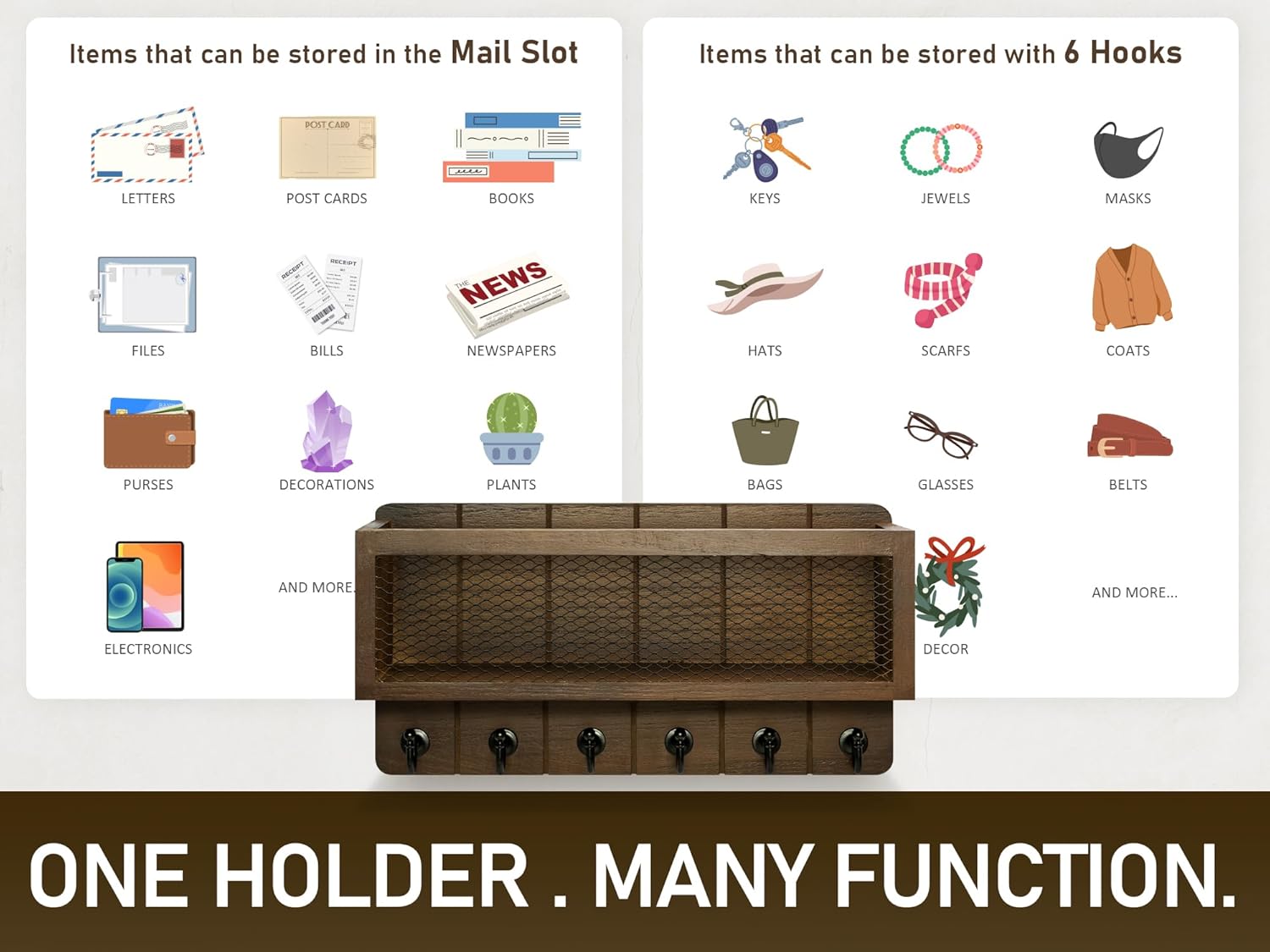 【Quality Construction】 Our rustic mail organizer is made of high quality natural wood to ensure strong, durable, heavy load bearing capacity, long-term non-deformation, stronger than other key and mail holder.